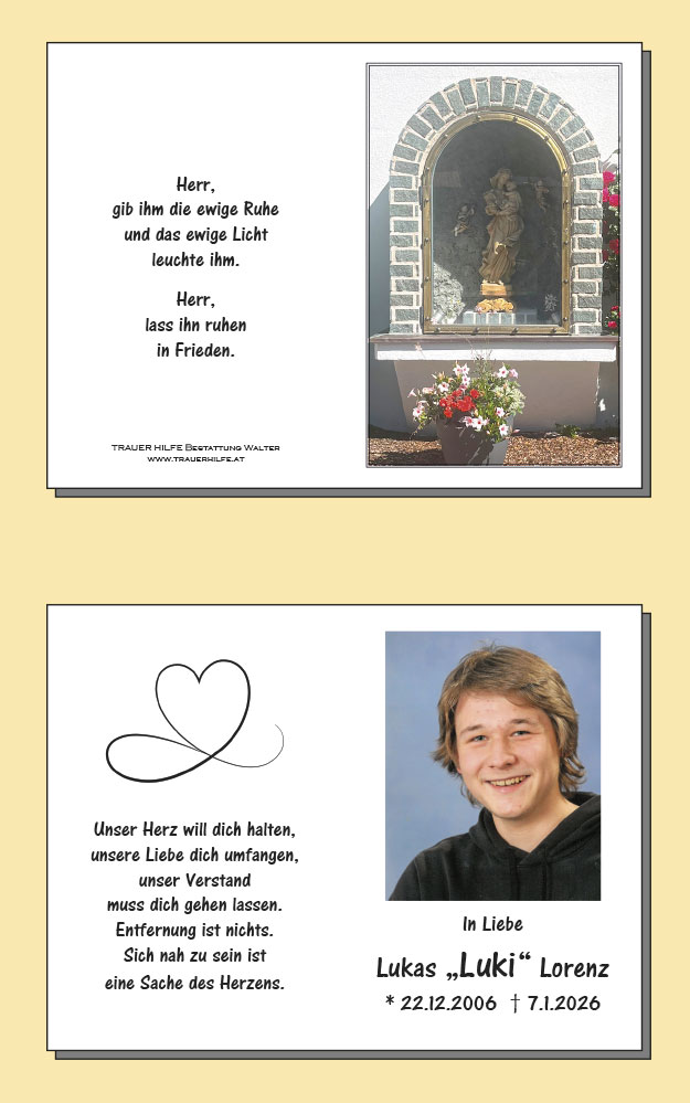 Mögen die Erinnerungen an Lukas Kraft und Trost schenken.