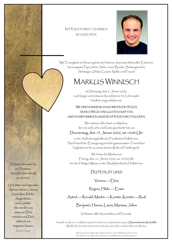 Markus wird euch immer begleiten und in den Herzen und Erinnerungen weiterleben.