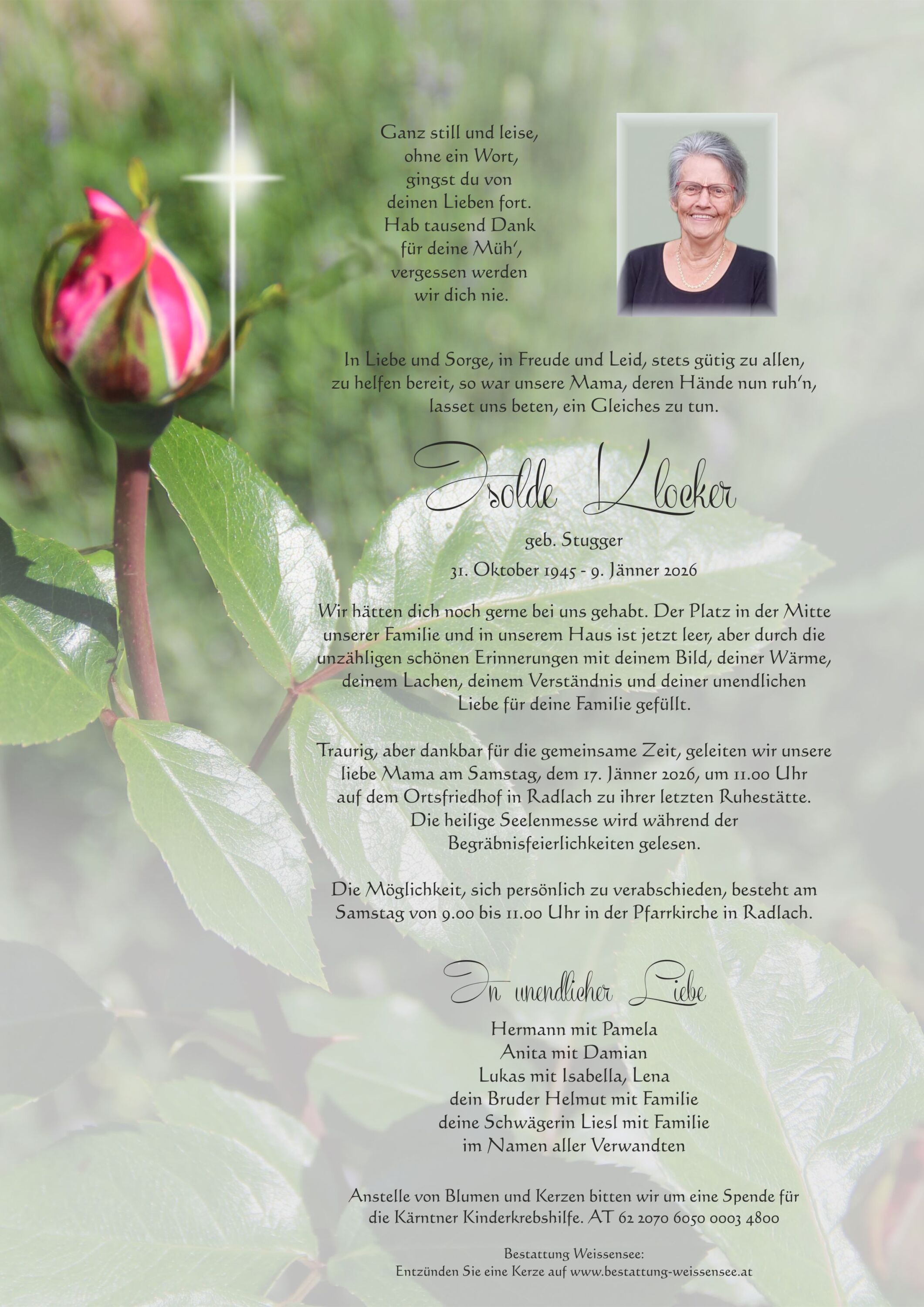 Friedhof 9754 Radlach, † 09.01.2026 (80 Jahre)