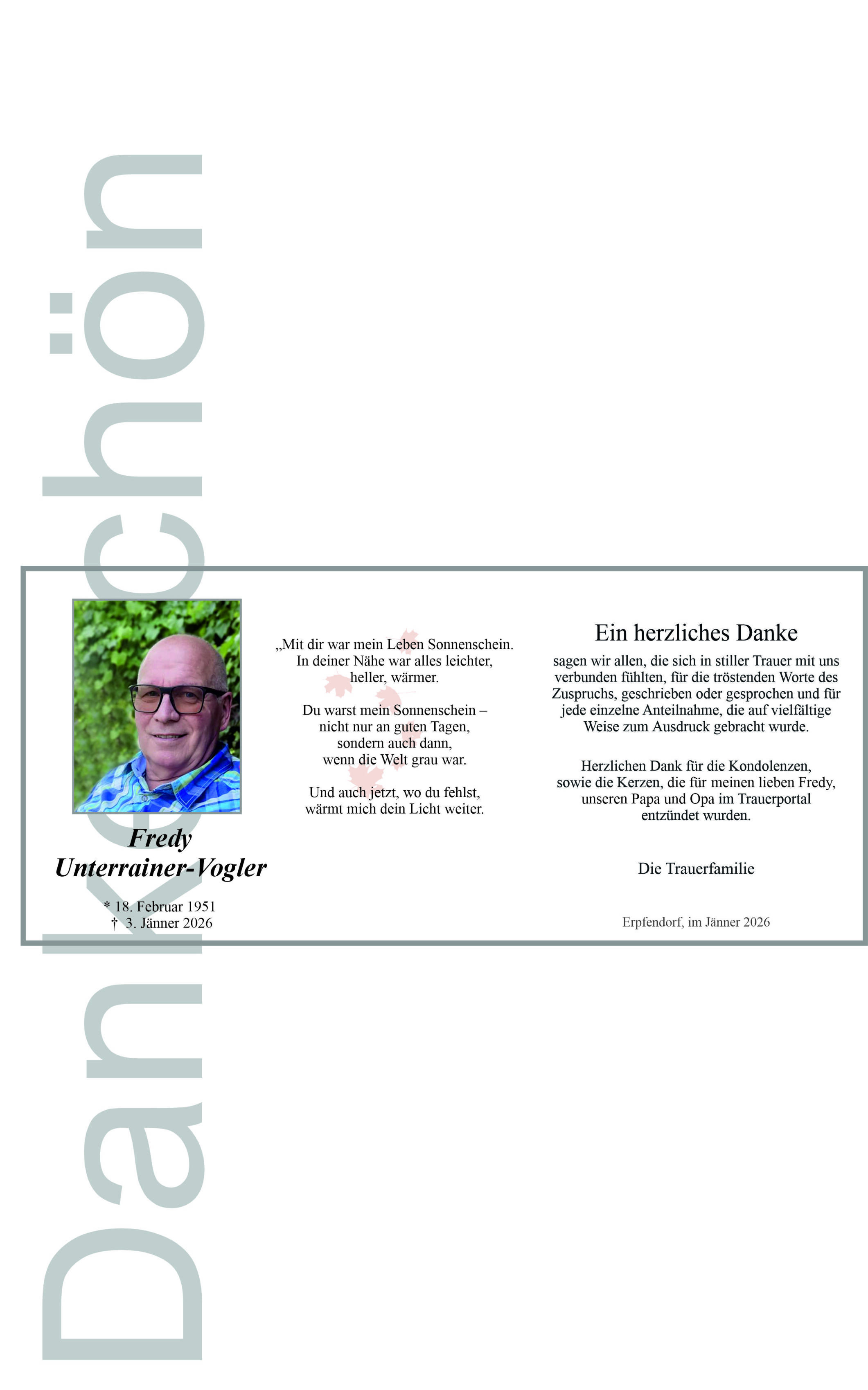 Neue Kerze für Fredy Unterrainer-Vogler entzünden.