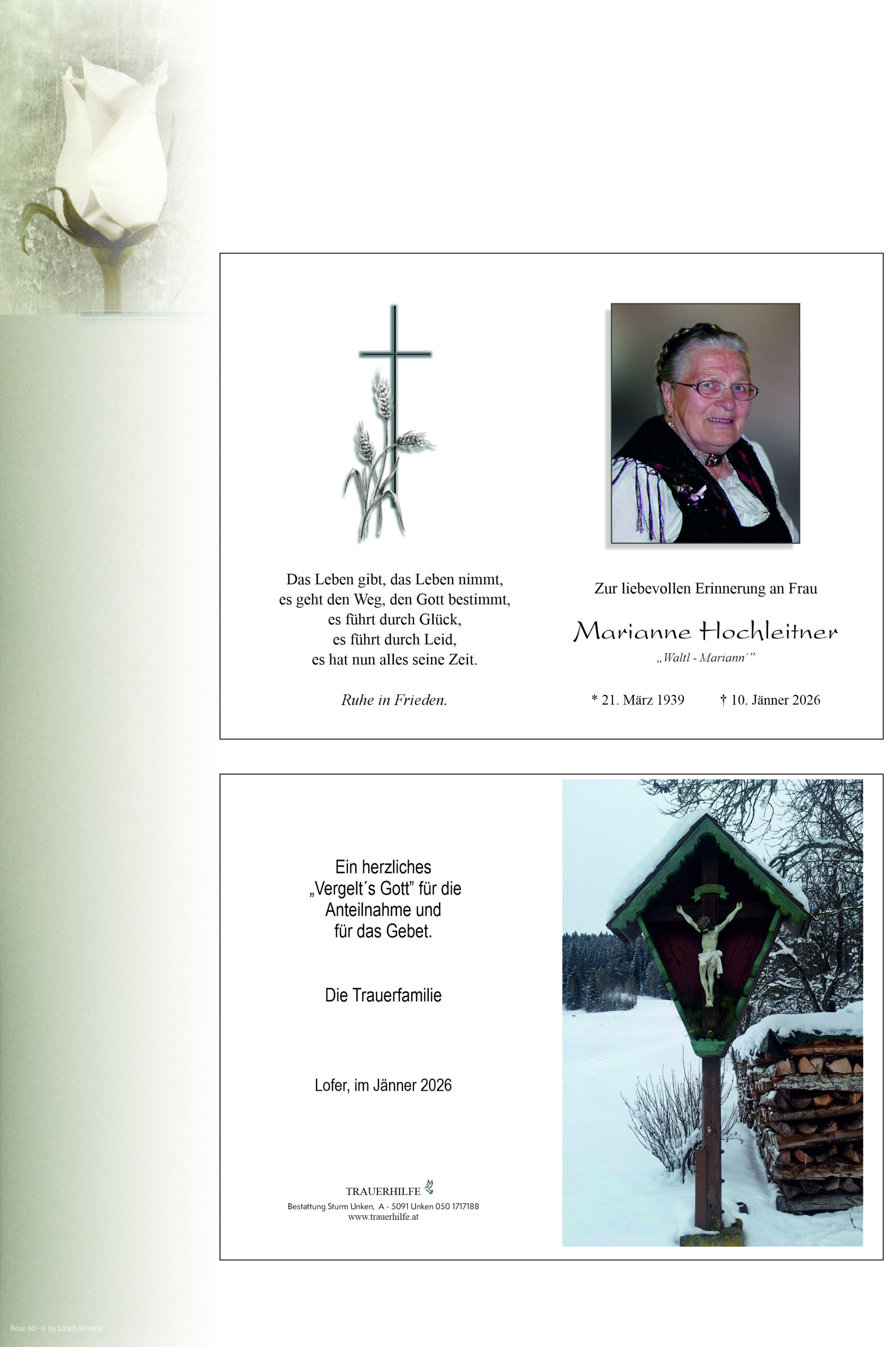 Friedhof Friedhof Lofer, † 10.01.2026 (86 Jahre)