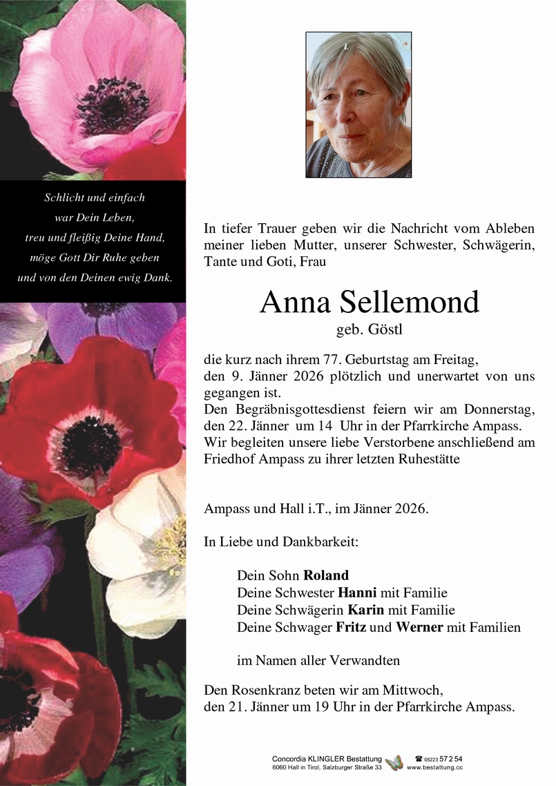Friedhof Friedhof Ampass, † 09.01.2026 (77 Jahre)