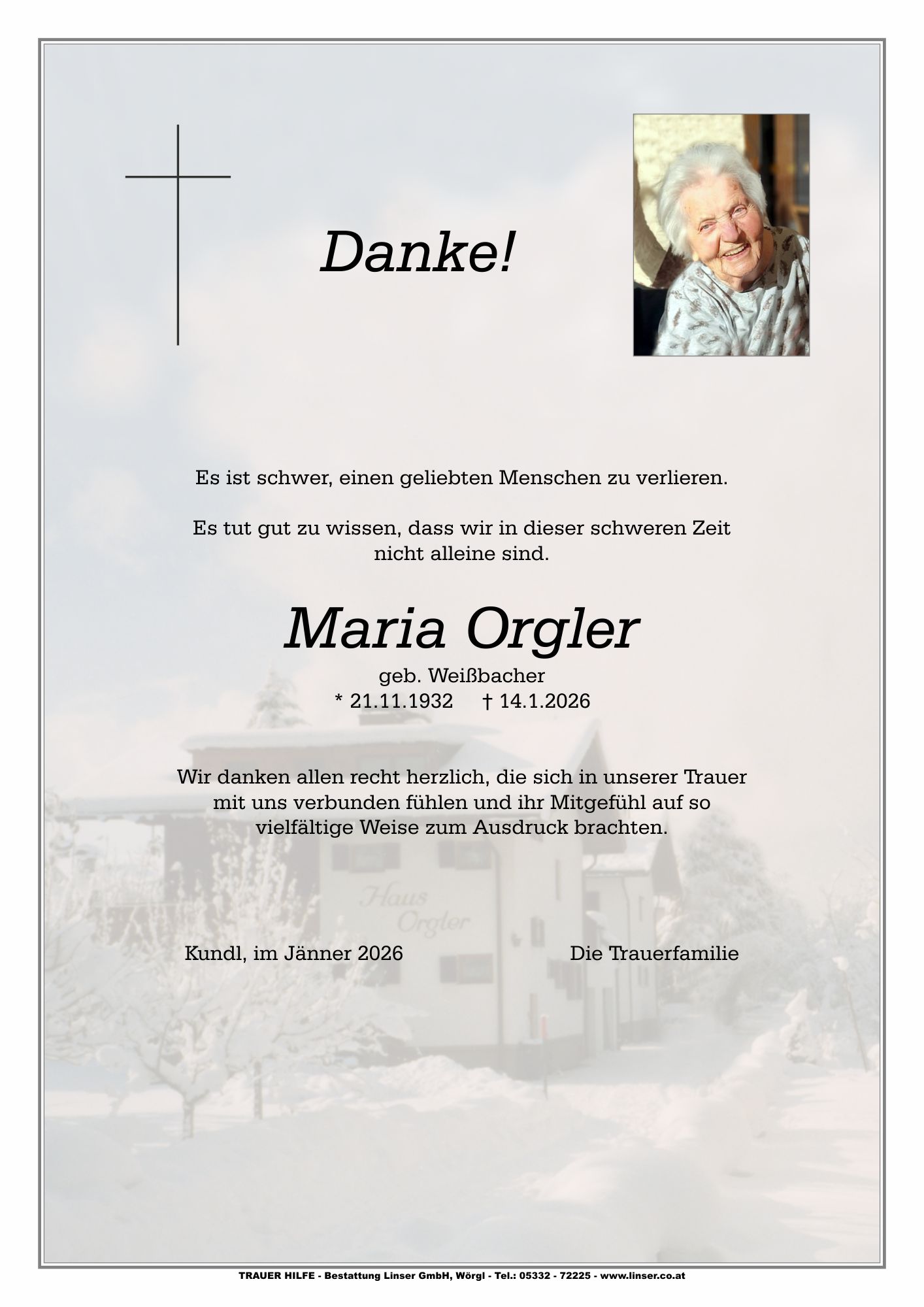 Friedhof Ortsfriedhof Kundl, † 14.01.2026 (93 Jahre)