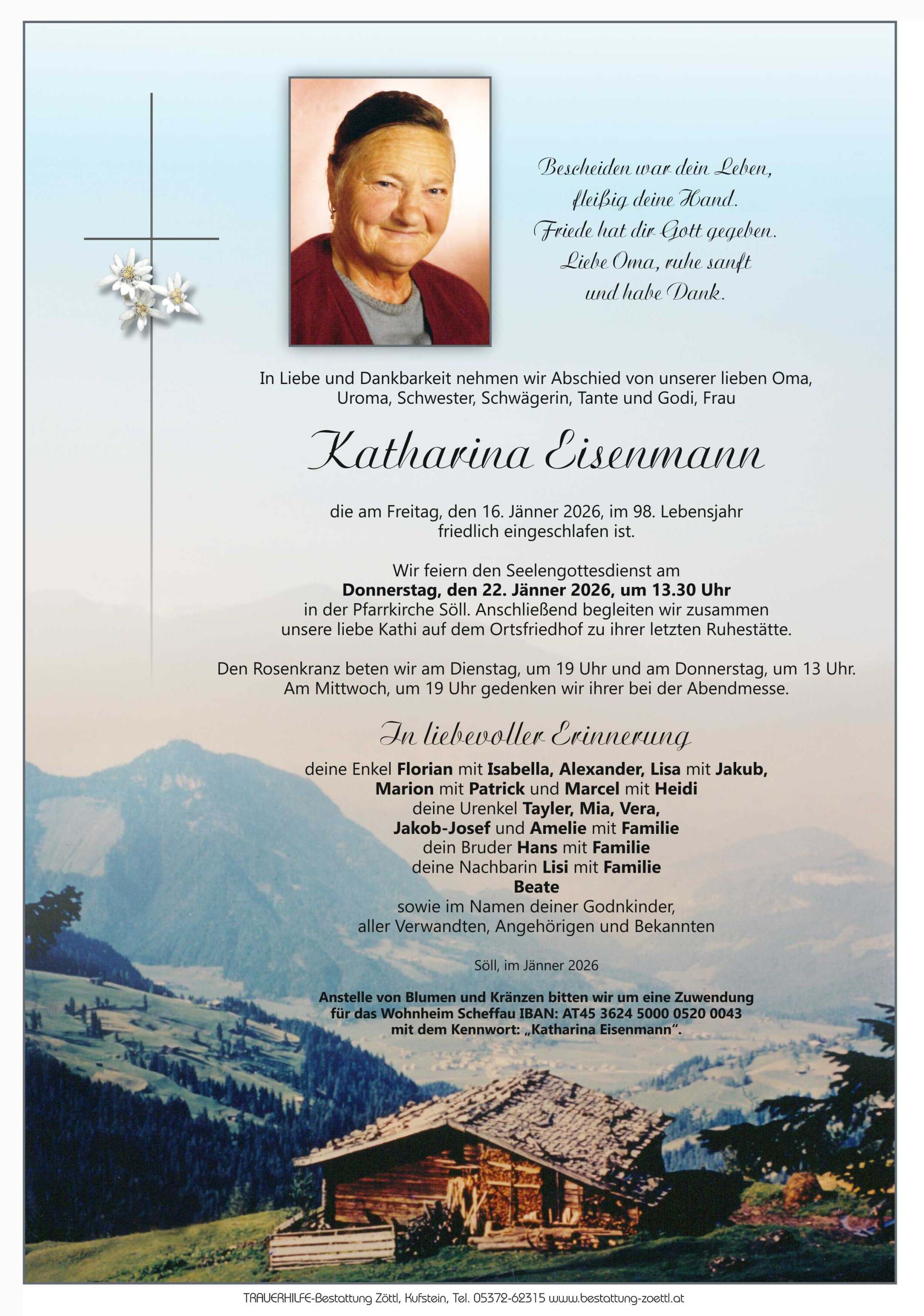 Friedhof Friedhof Söll, † 16.01.2026 (97 Jahre)