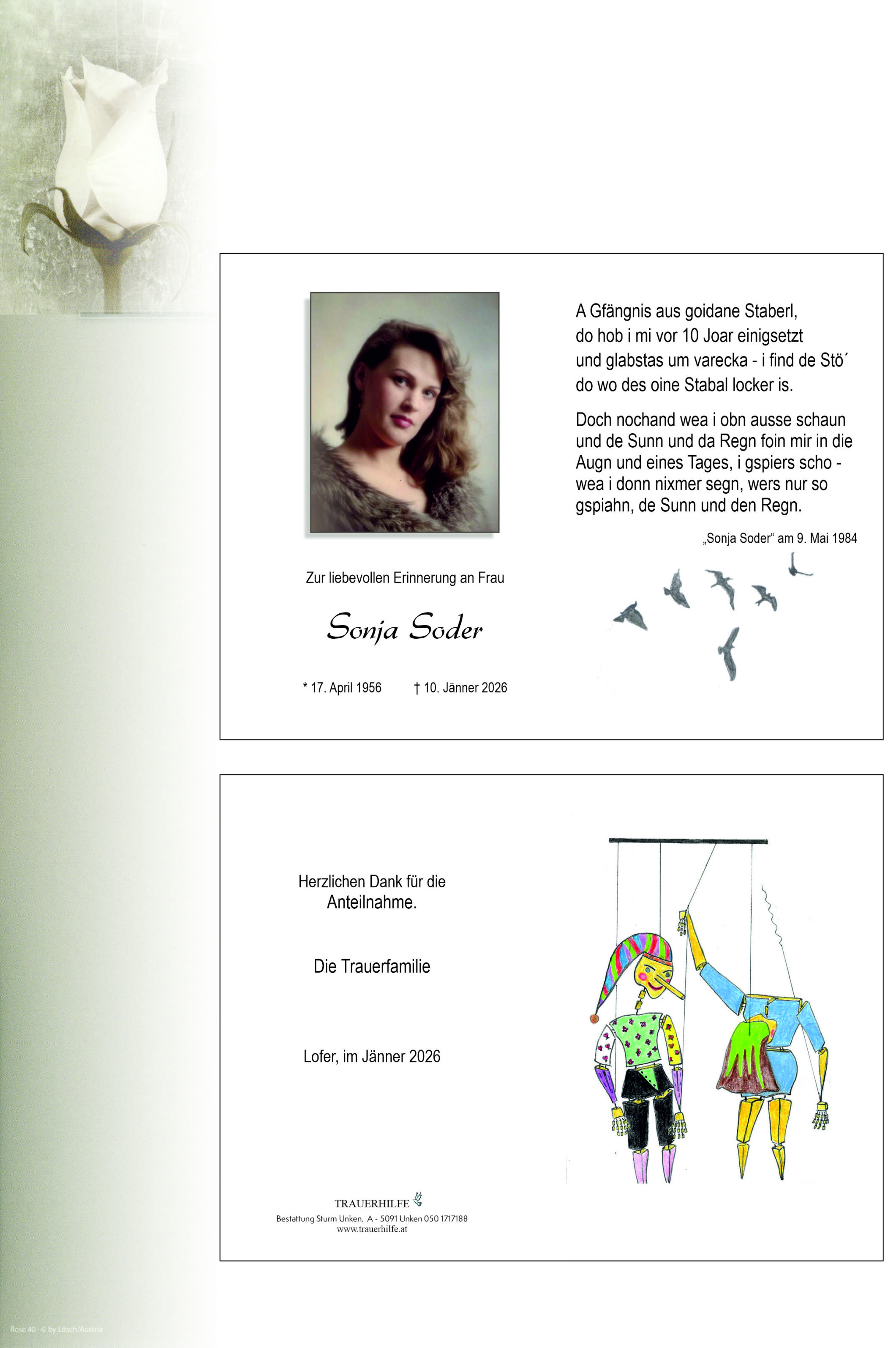 Ruhe in Frieden liebe Sonja, Marietta