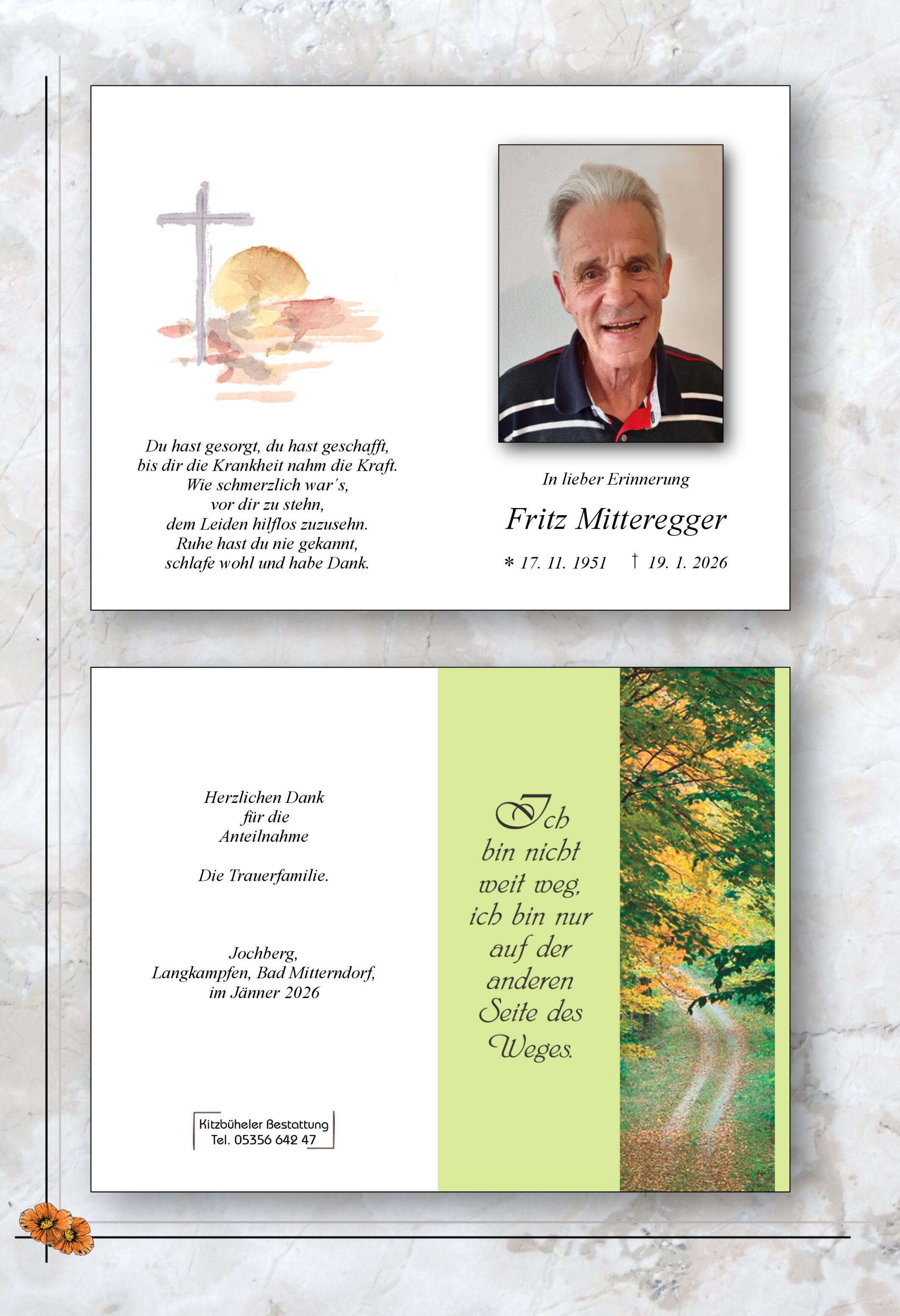 "Wir hätten auch gerne einen Opa Fritz" haben unsere Kinder oft gesagt, die leider keinen Opa mehr haben. Und wir können uns nur anschließen, so einen Opa, Papa uvm. hätte jeder einfach gerne. Dass genau solche herzensguten Menschen dann oft so schwere Last und Leid tragen müssen, ist unbegreiflich. Wir werden Fritz mit seinem Humor, seiner geradlinigen Art, seiner Einstellung und seiner Herzensgüte sehr vermissen. Immer, wenn sein Auto in Bad Mitterndorf am Parkplatz stand, wusste man: Opa Fritz ist auf Besuch, alles wird gut!