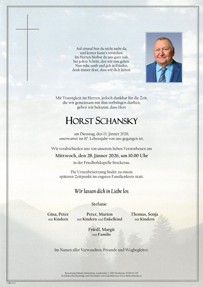 Friedhof Friedhof Stockerau, † 13.01.2026 (86 Jahre)