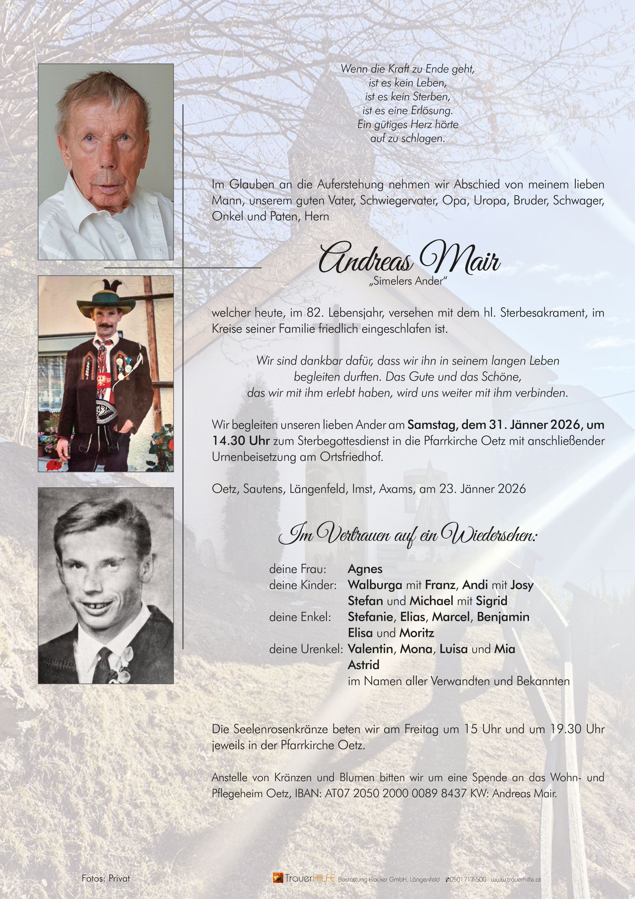Friedhof Oetz, † 23.01.2026 (81 Jahre)