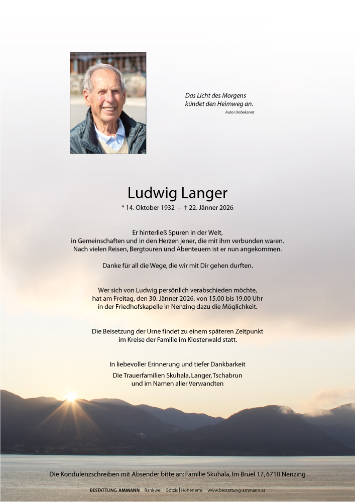 Bestattung wurde durchgeführt von: Bestattung Ammann Rankweil Ammann Bestattung GmbH Rankweil Splügenweg 1 6830 - Rankweil Tel.: 05522 42104 zum Bestatter