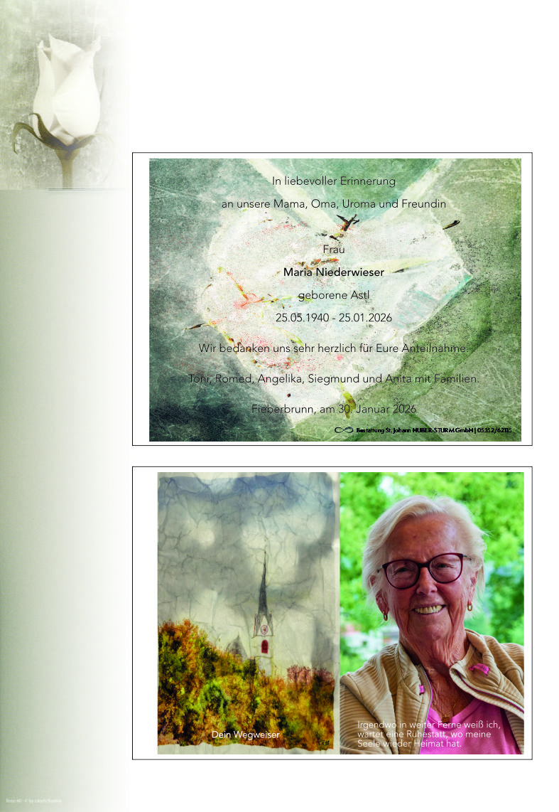 Friedhof Friedhof Fieberbrunn, † 25.01.2026 (85 Jahre)