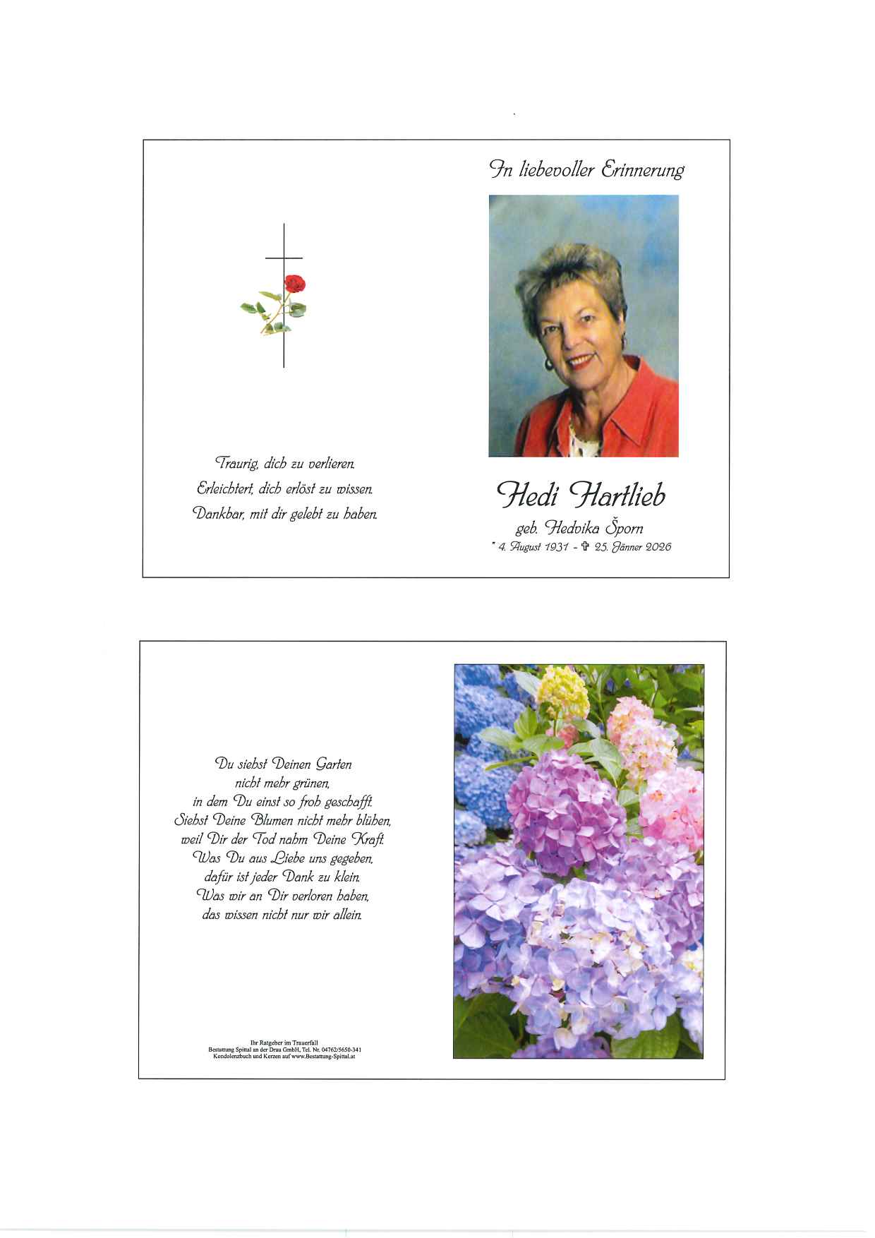 Bestattung wurde durchgeführt von: Gerald Baumgartner/Franz Kramaritsch/Sylvia Wippl Gerald Baumgartner/Franz Kramaritsch/Sylvia Wippl Städtische Bestattungsanstalt Spittal an der Drau Edlinger Straße 55 9800 - Spittal an der Drau Tel.: 04762 5650341 zum Bestatter