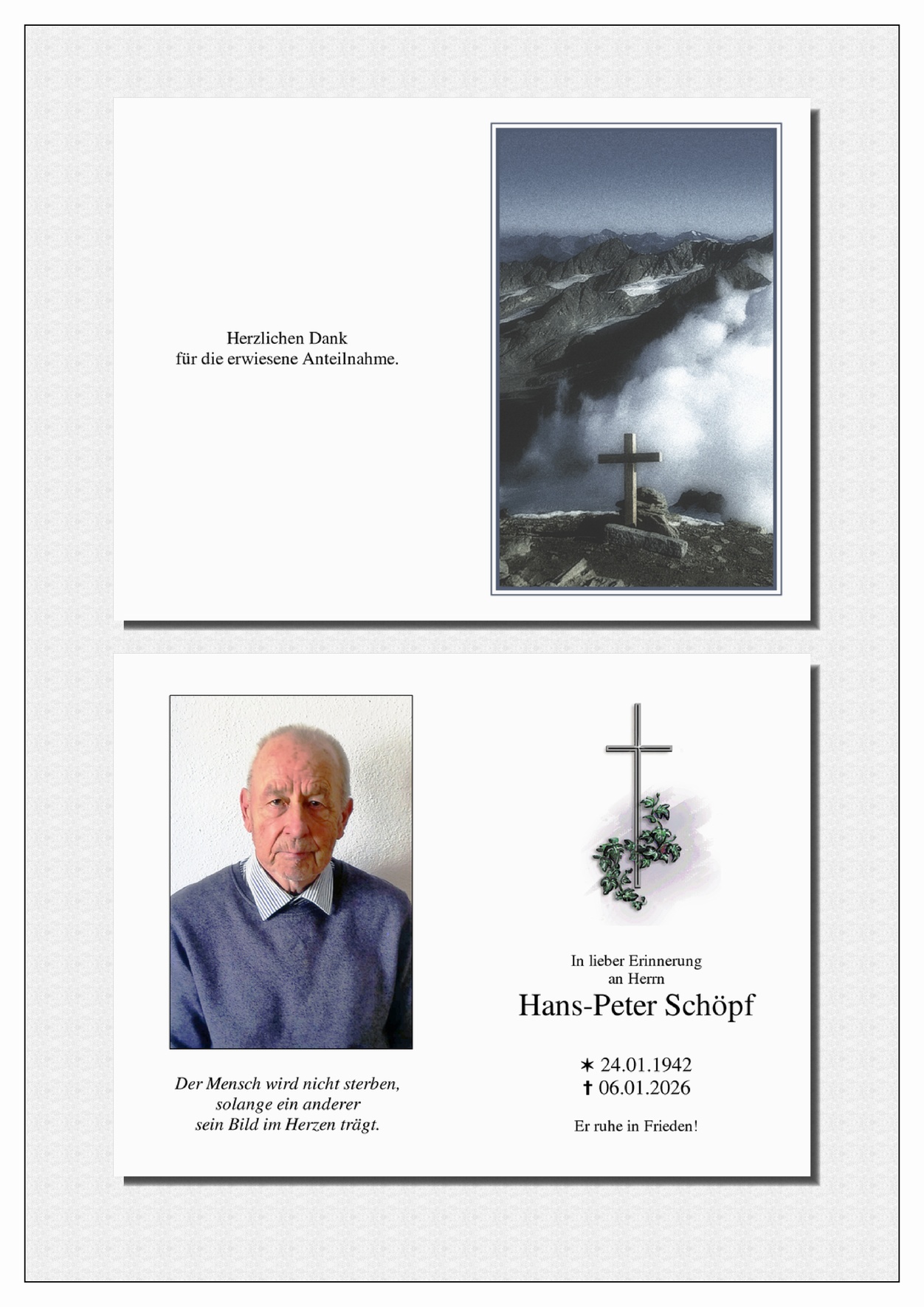 Neue Kerze für Hans-Peter Schöpf entzünden.
