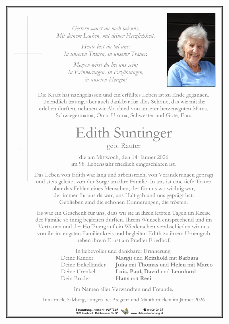 Friedhof Pradler Friedhof, † 14.01.2026 (97 Jahre)