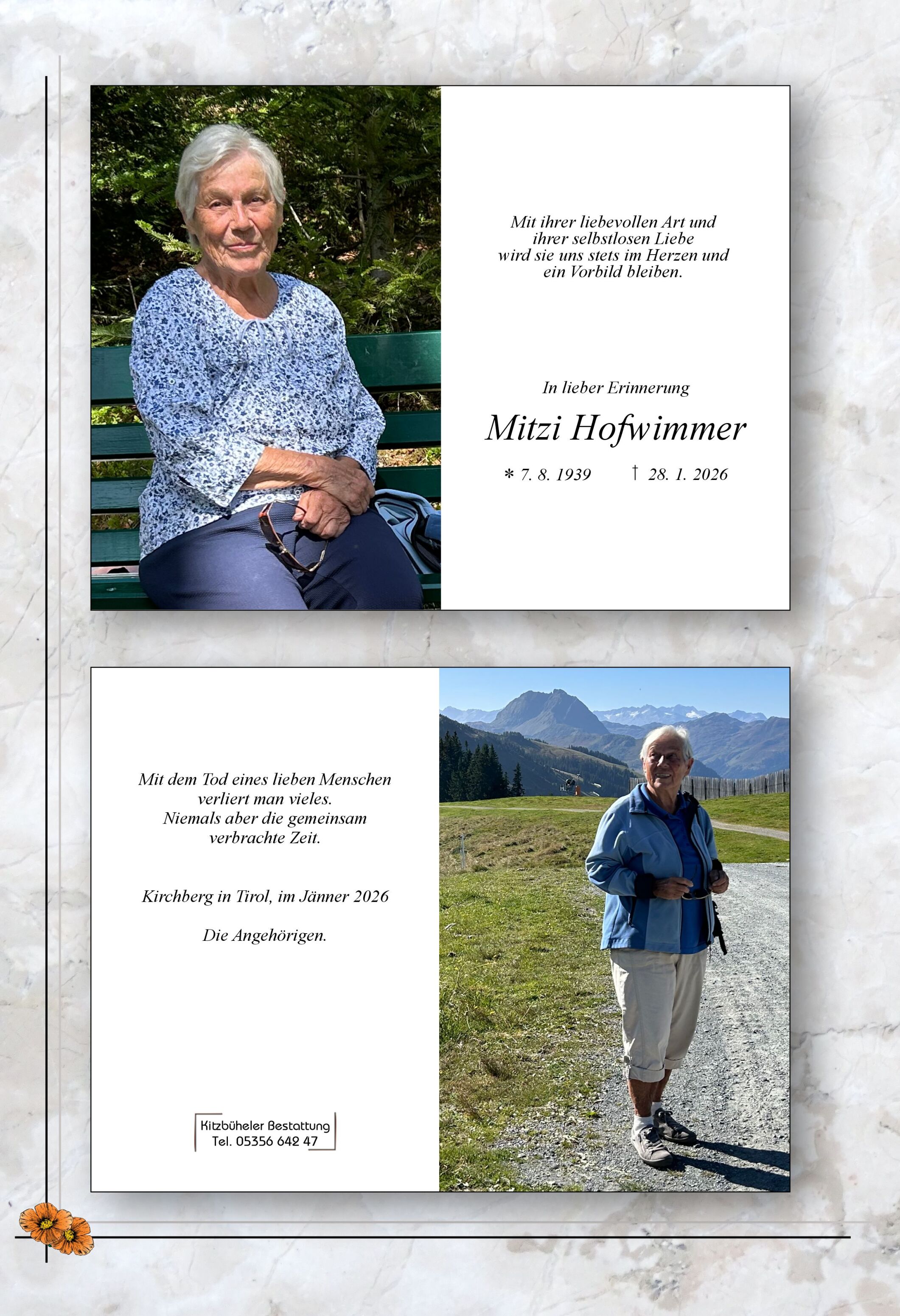 Bestattung wurde durchgeführt von: Kitzbüheler Bestattung Kitzbüheler Bestattung Kitzbüheler Bestattung WV GmbH Jochberger Straße 62 6370 - Kitzbühel Tel.: 05356 642 47 Tel.: 050 1717 180 zum Bestatter