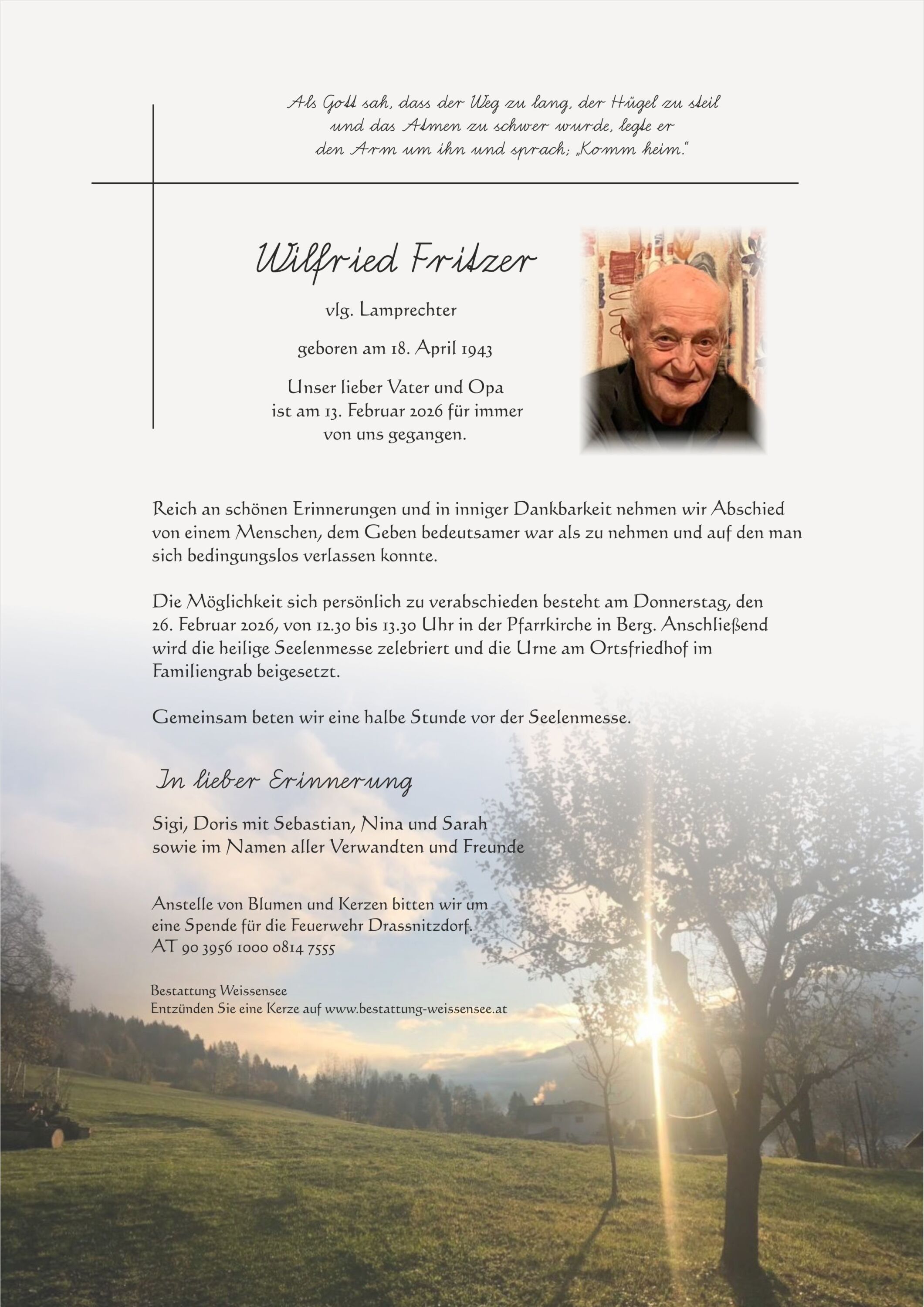 Friedhof 9771 Berg, † 13.02.2026 (82 Jahre)