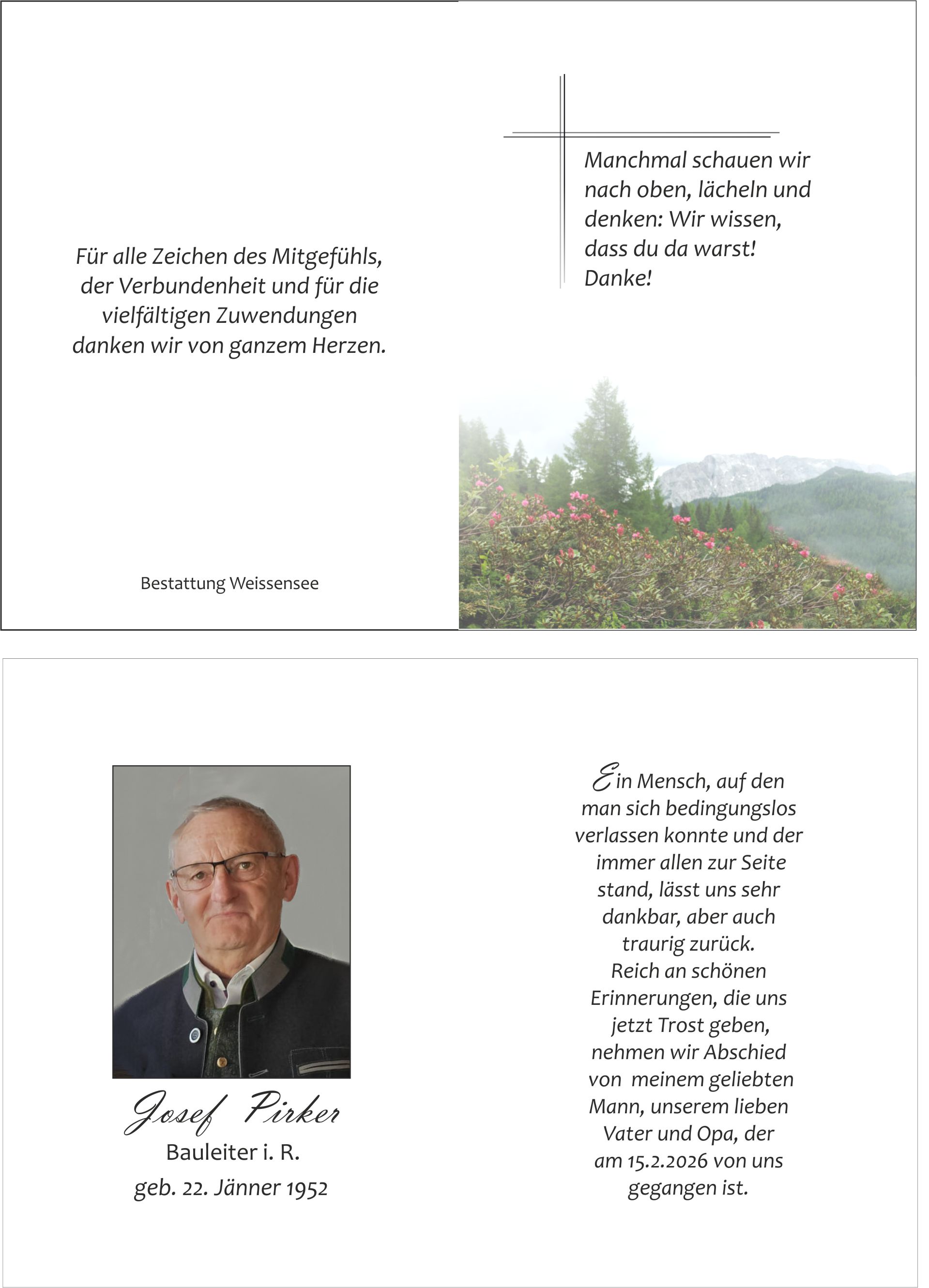 Unser aufrichtige Anteilnahme fam wirnsberger