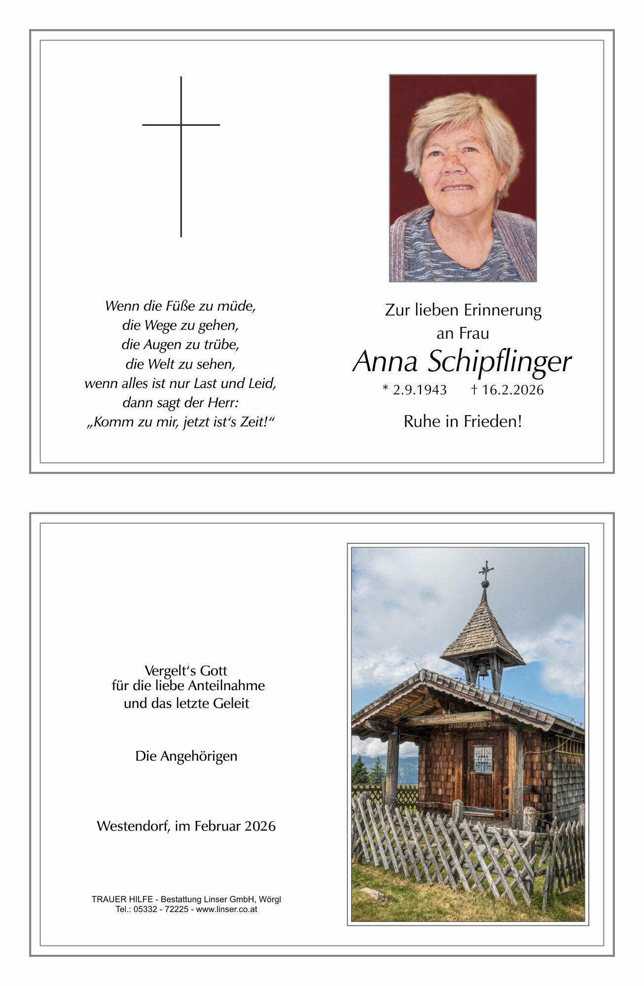 Ruhe in Frieden.18.02.2026 12:53 - Vroni Sollerer
