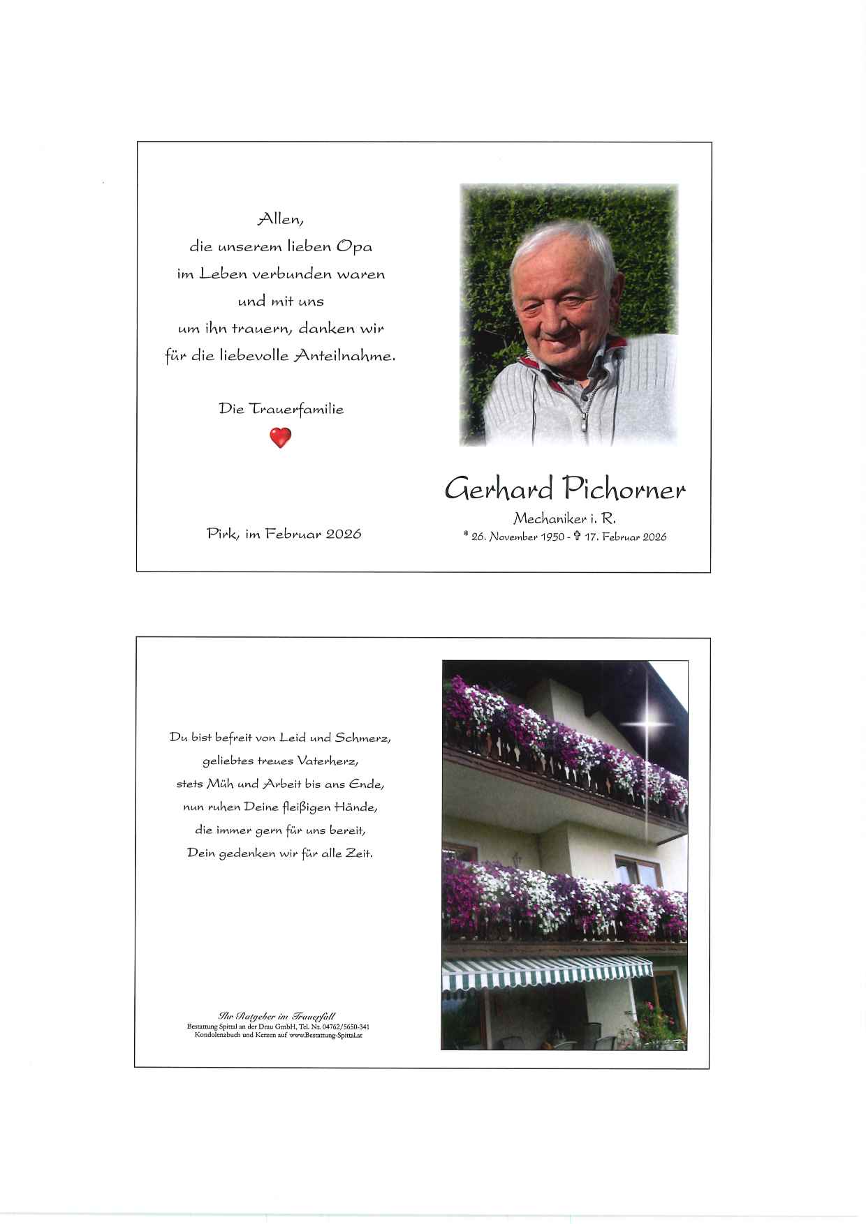 Friedhof Evang. Kirche Unterhaus, † 17.02.2026 (75 Jahre)