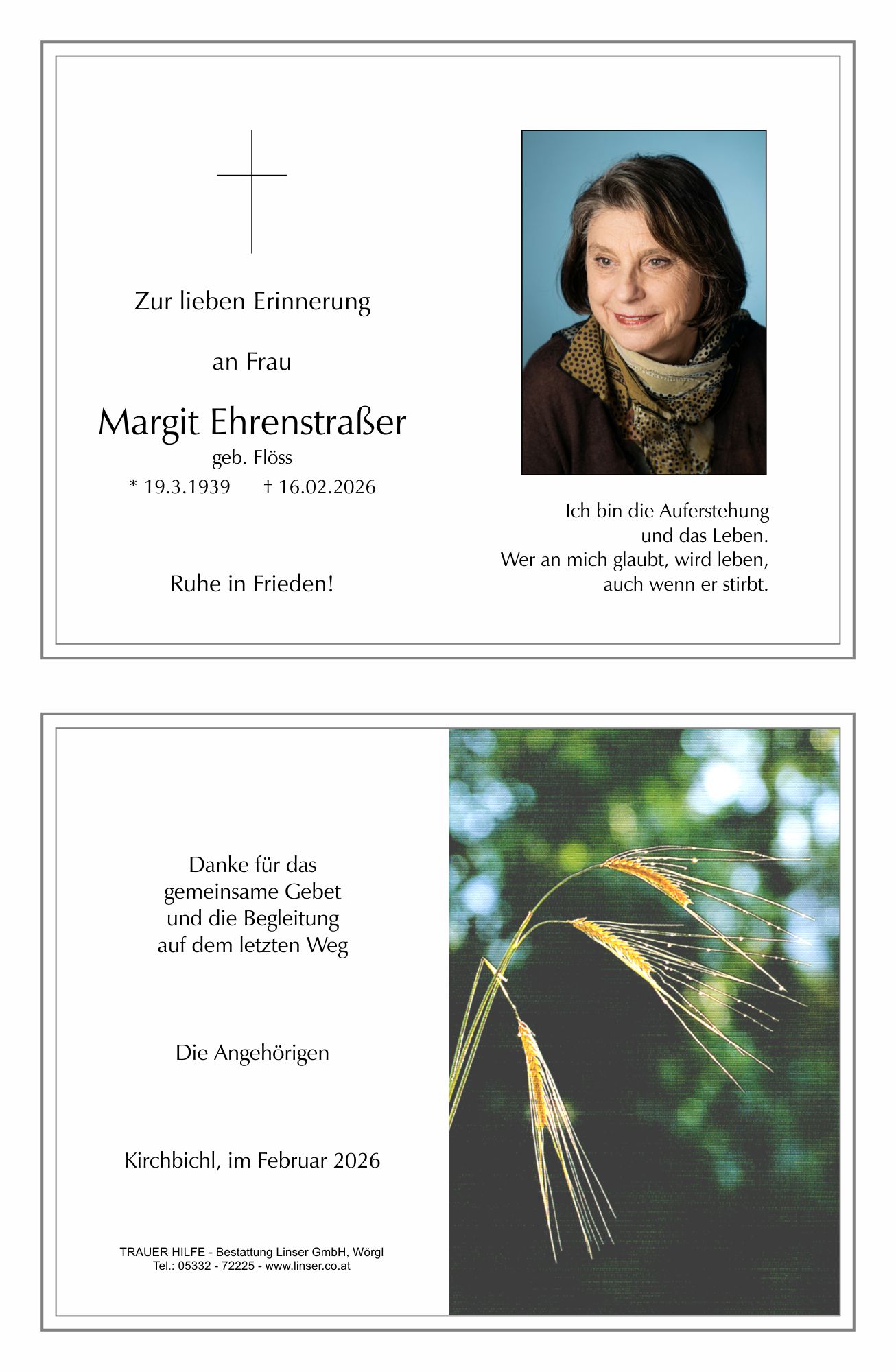 Bestattung wurde durchgeführt von: Walter Linser TrauerHilfe Bestattung Linser GmbH Wildschönauerstraße 41 6300 - Wörgl Tel.: 05332 72225 zum Bestatter