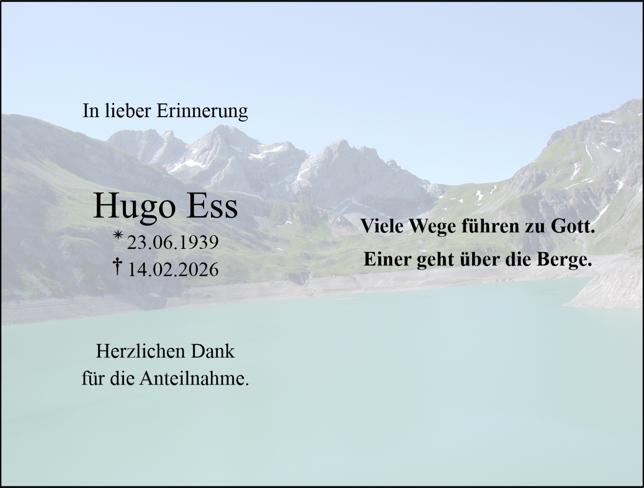 Bestattung wurde durchgeführt von: Martin Gohm Martin Gohm Bestattung Gohm Schregenbergstraße 5 6800 - Feldkirch Tel.: 05522 76071 zum Bestatter