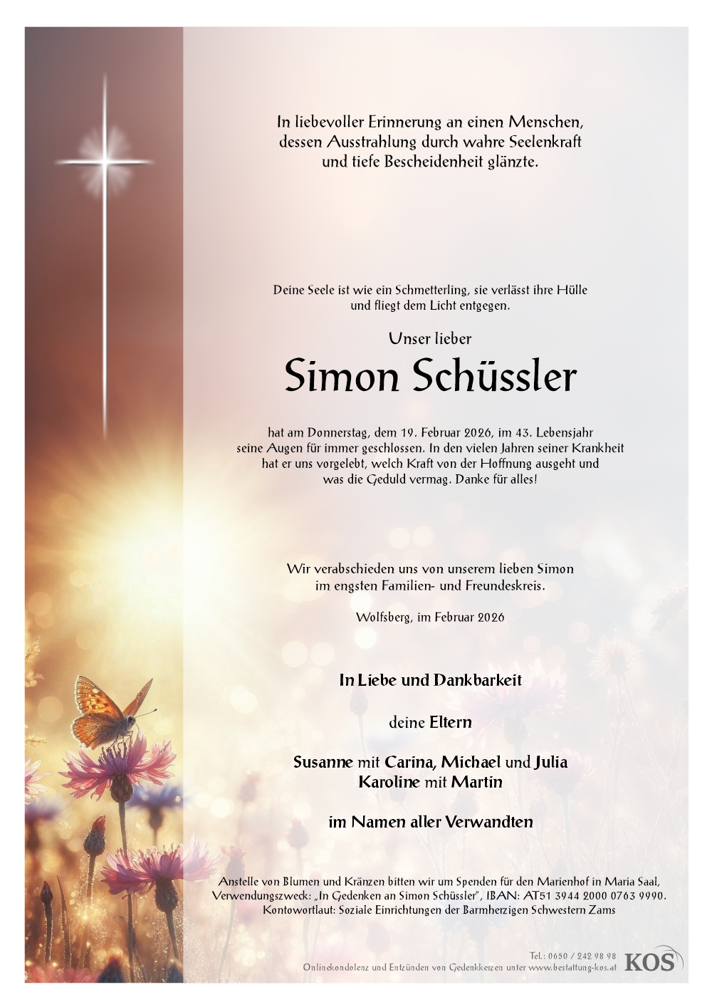 Friedhof Stadtfriedhof 2/Wolfsberg, † 19.02.2026 (42 Jahre)