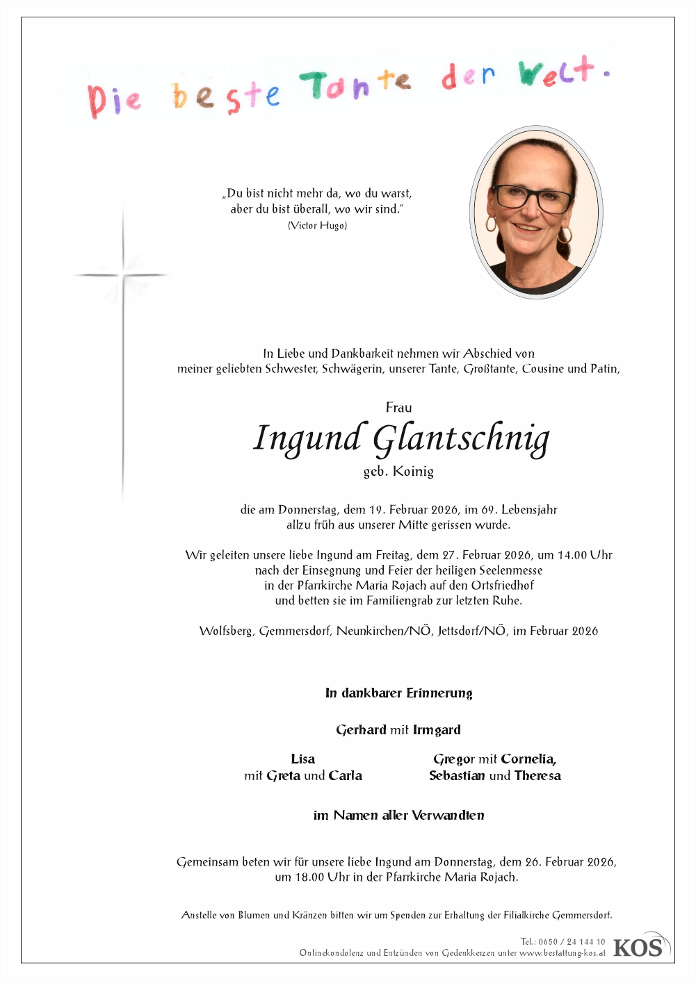 Bestattung wurde durchgeführt von: Familienbetrieb Bestattung Kos Bestattung A. & J. Kos GmbH Krankenhausstraße 2A 9400 - Wolfsberg Tel.: 0650 242 98 98 zum Bestatter