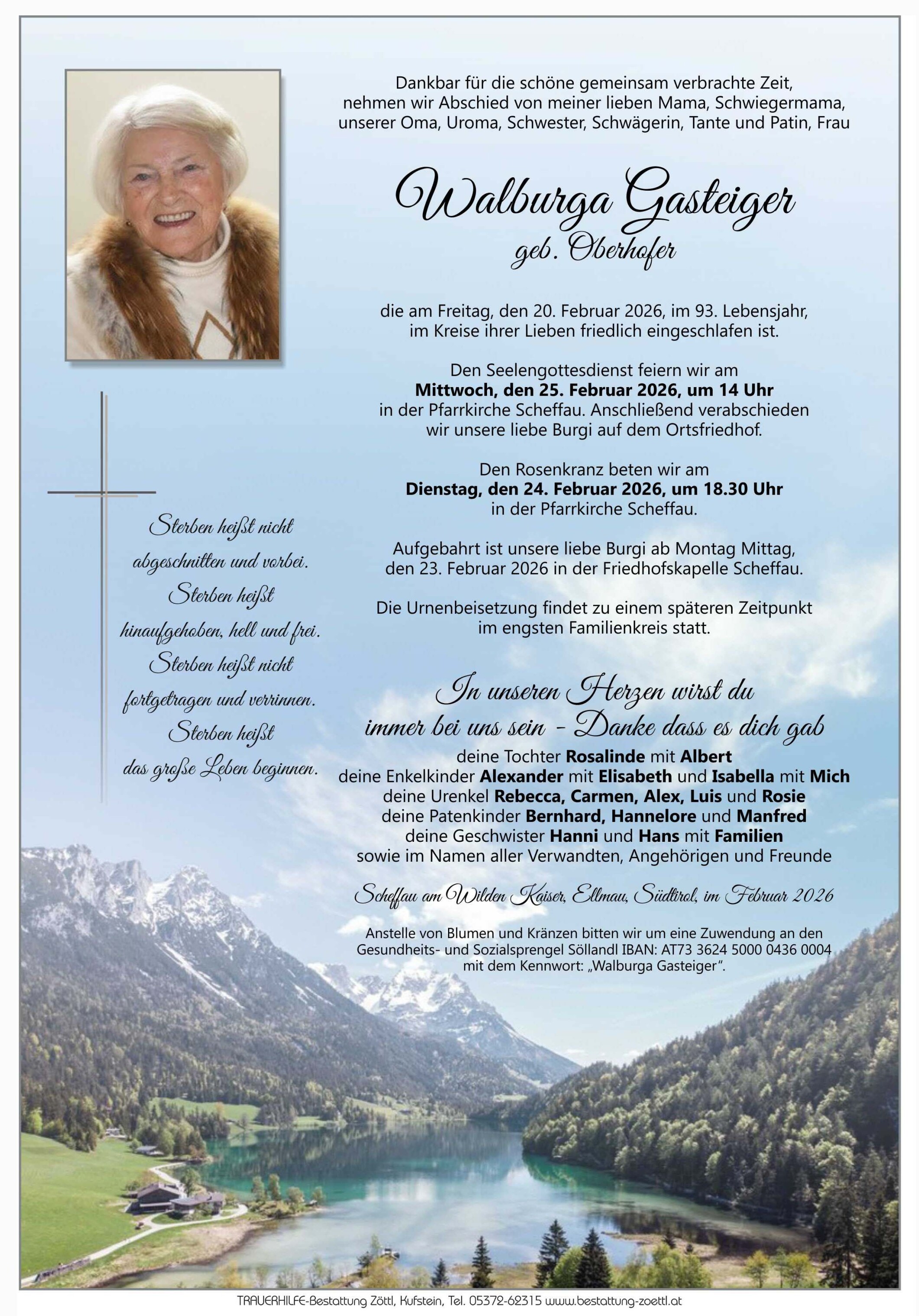 Friedhof Friedhof Scheffau, † 20.02.2026 (92 Jahre)