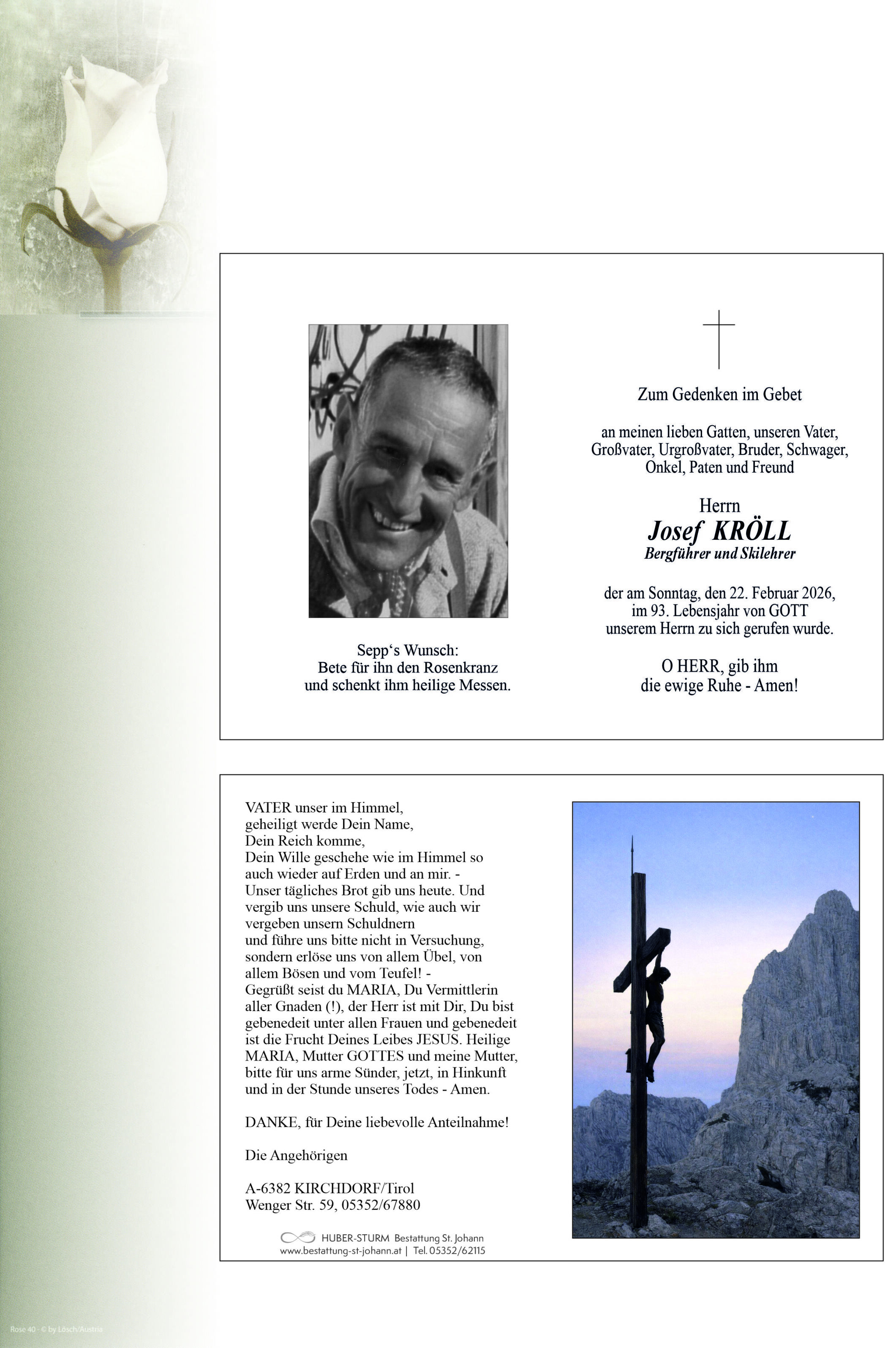 Friedhof Friedhof Kirchdorf in Tirol, † 22.02.2026 (92 Jahre)