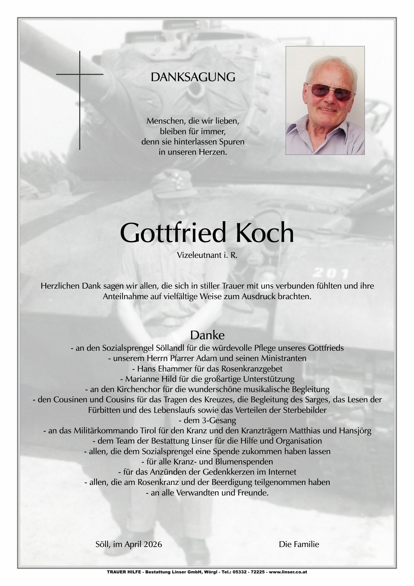 Bestattung wurde durchgeführt von: Walter Linser TrauerHilfe Bestattung Linser GmbH Wildschönauerstraße 41 6300 - Wörgl Tel.: 05332 72225 zum Bestatter