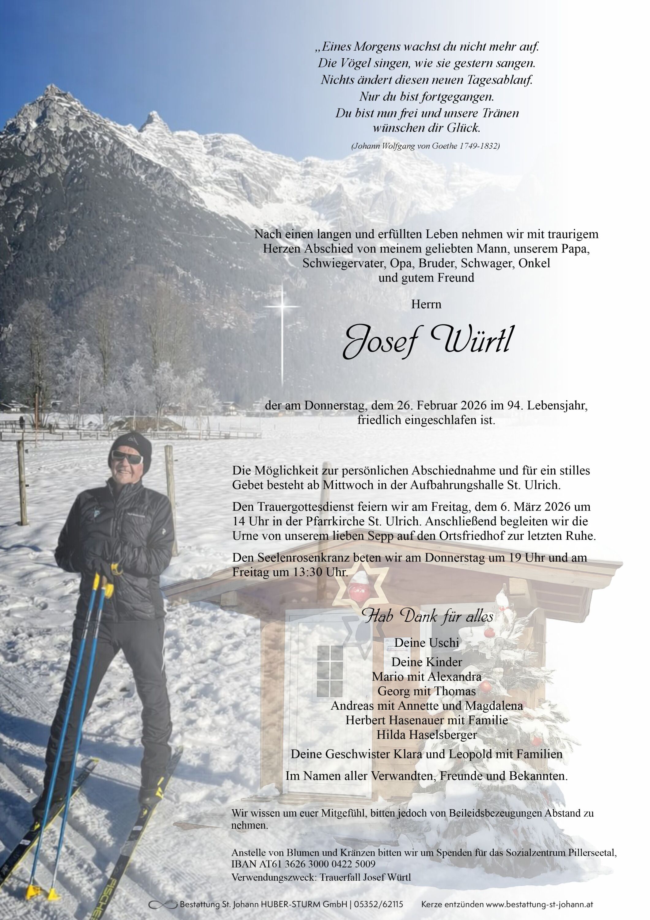 Friedhof Friedhof St. Ulrich am Pillersee, † 26.02.2026 (93 Jahre)