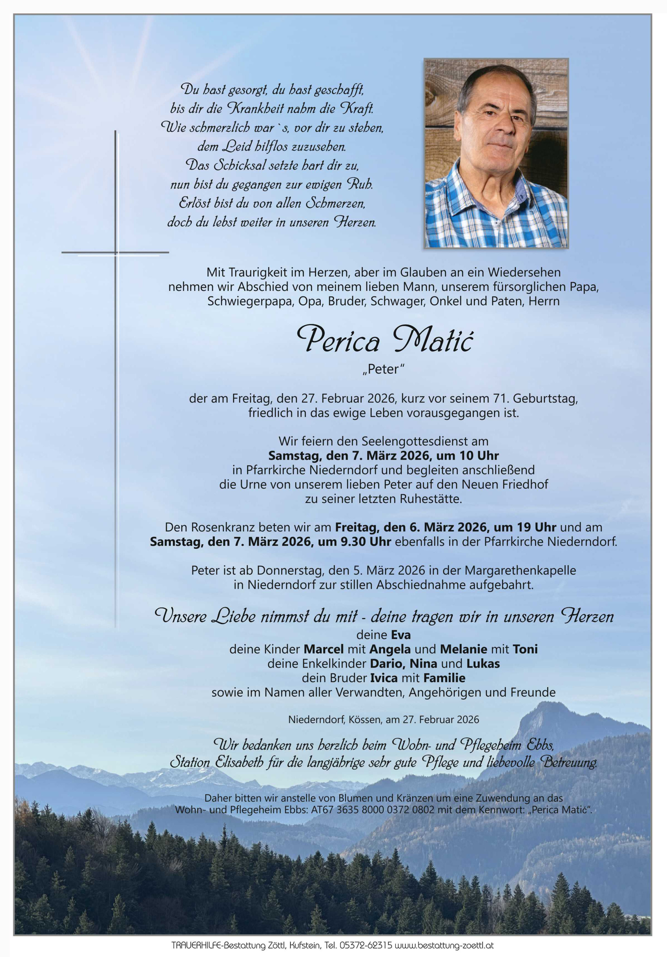 Friedhof Neuer Friedhof Niederndorf, † 27.02.2026 (70 Jahre)