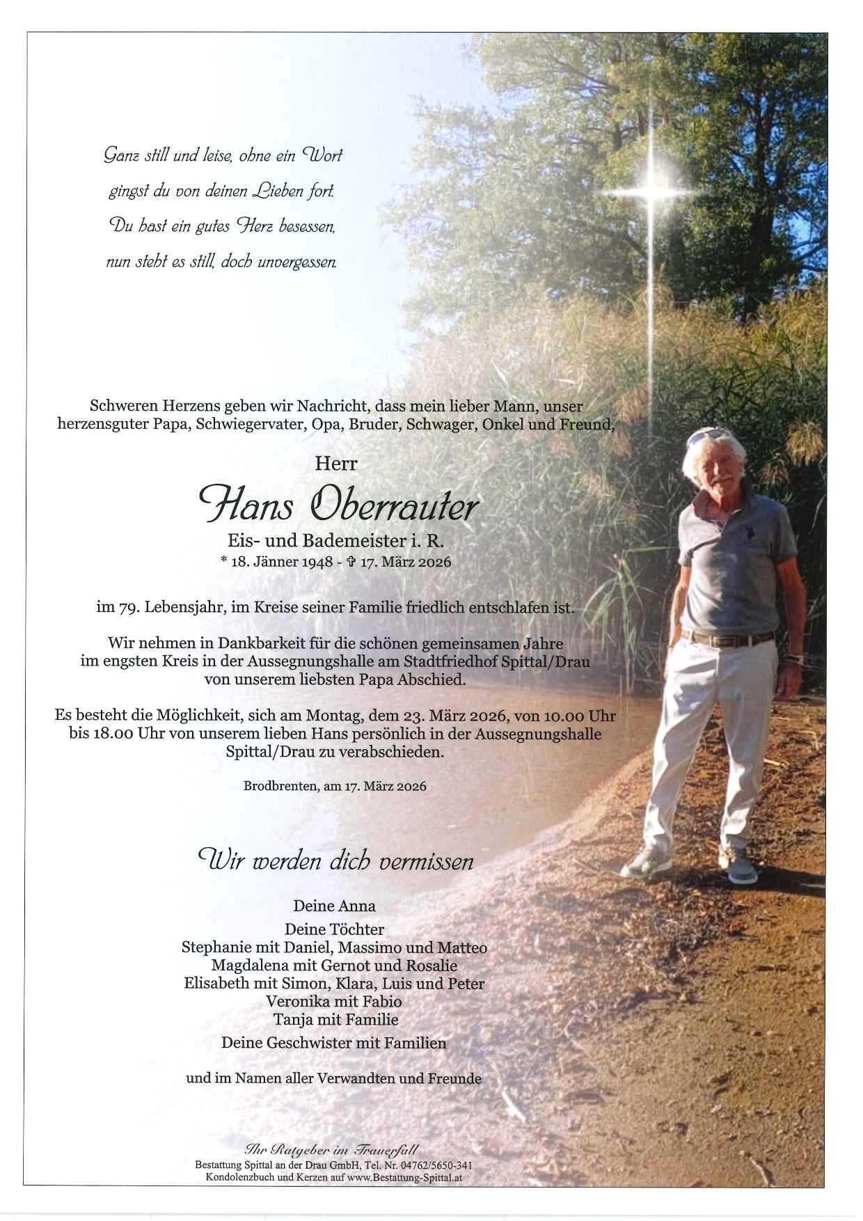 Friedhof Aussegnungshalle Stadtfriedhof Spittal an der Drau, † 17.03.2026 (78 Jahre)