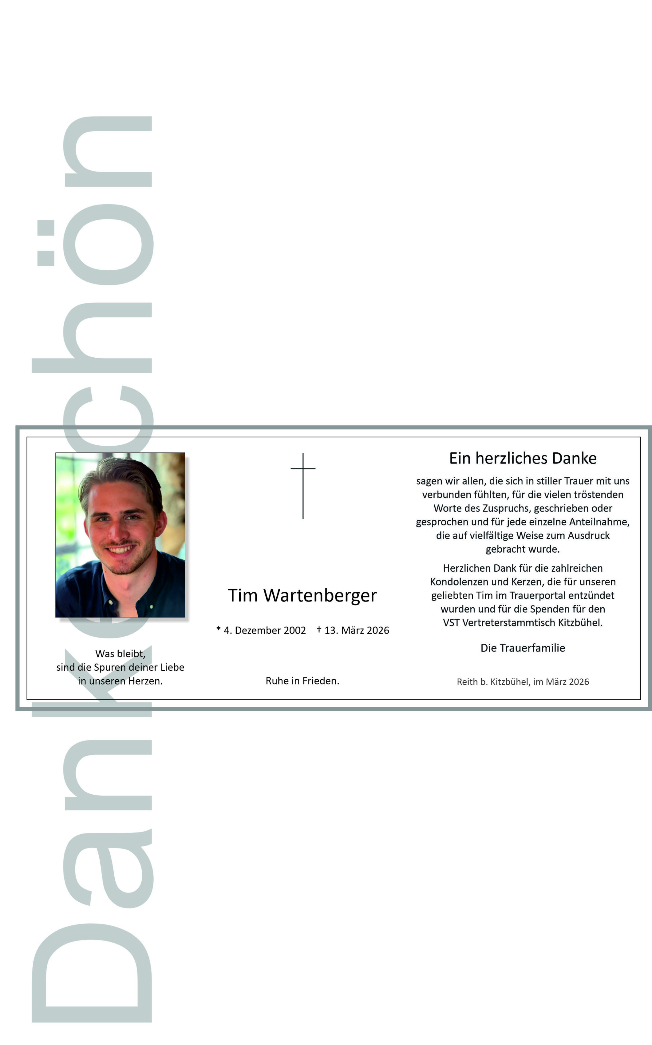 Möge die Trauer mit der Zeit übergehen in ein Gefühl der Liebe und Zuversicht, dass es ein Wiedersehen mit Tim gibt.18.03.2026 23:20 - Alexandria Gieringer-Fabi