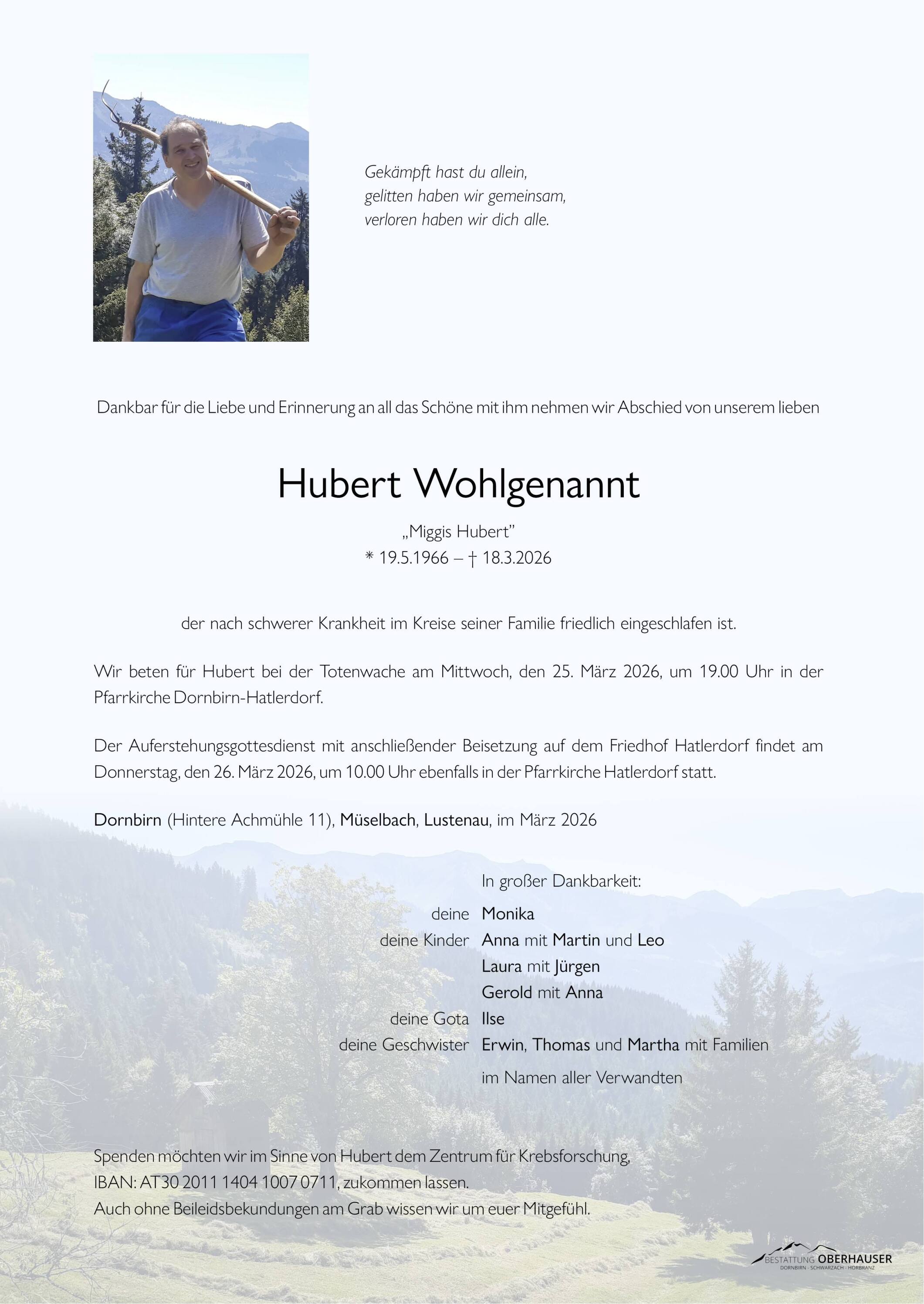Friedhof Dornbirn - Hatlerdorf, † 18.03.2026 (59 Jahre)