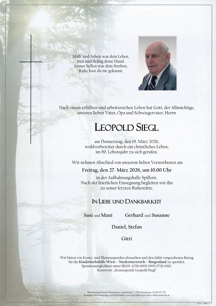Friedhof Spillern, † 19.03.2026 (88 Jahre)