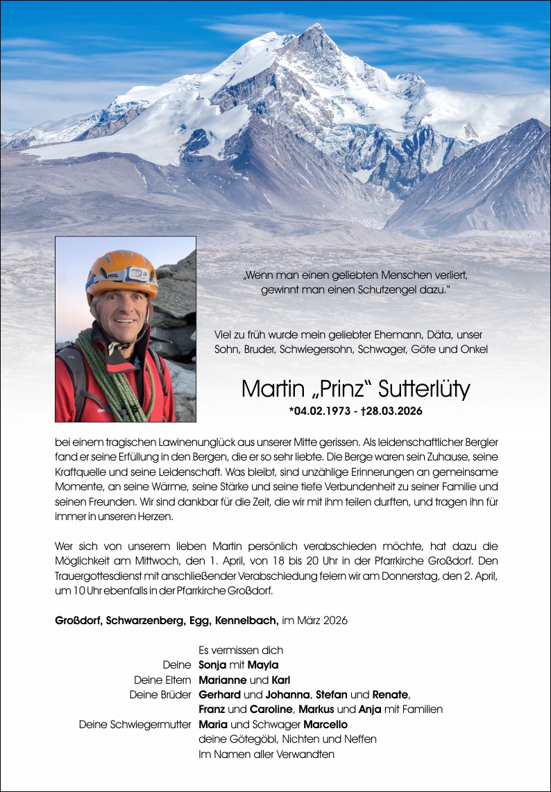 Neue Kerze für Martin Sutterlüty entzünden.