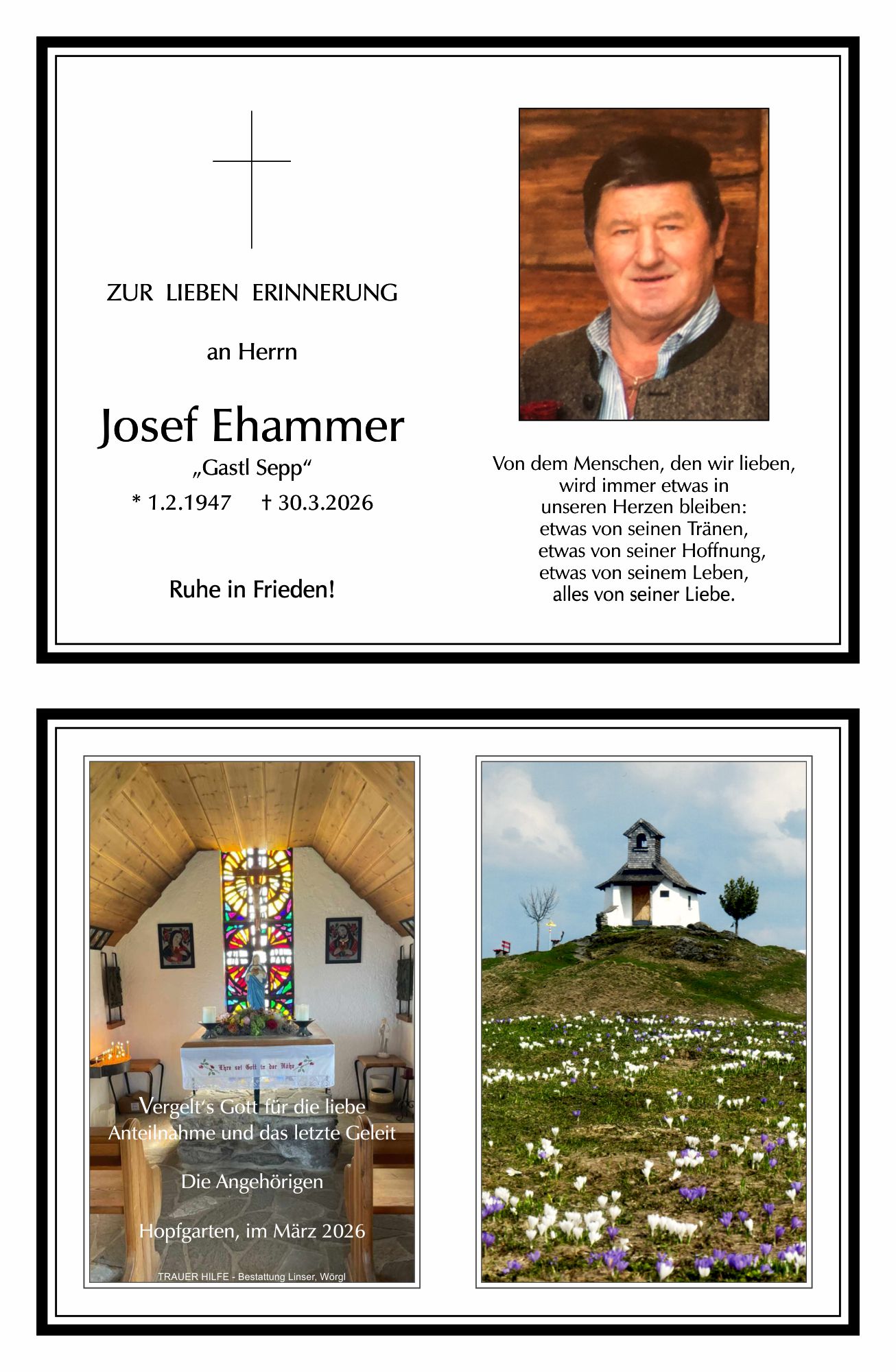 01.04.2026 22:21 - Aufrichtige Anteilnahme - Fam. Hirzinger