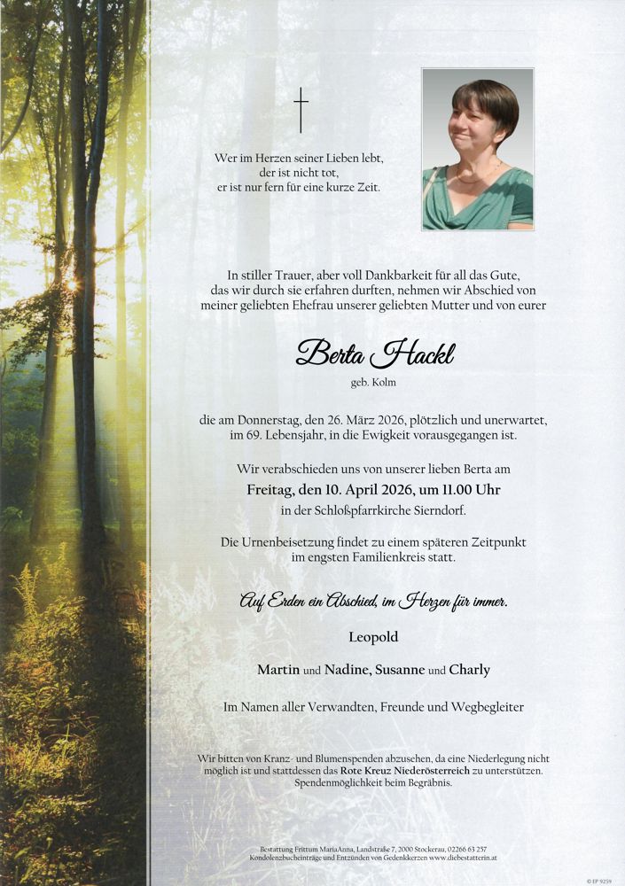 Friedhof Sierndorf, † 26.03.2026 (68 Jahre)