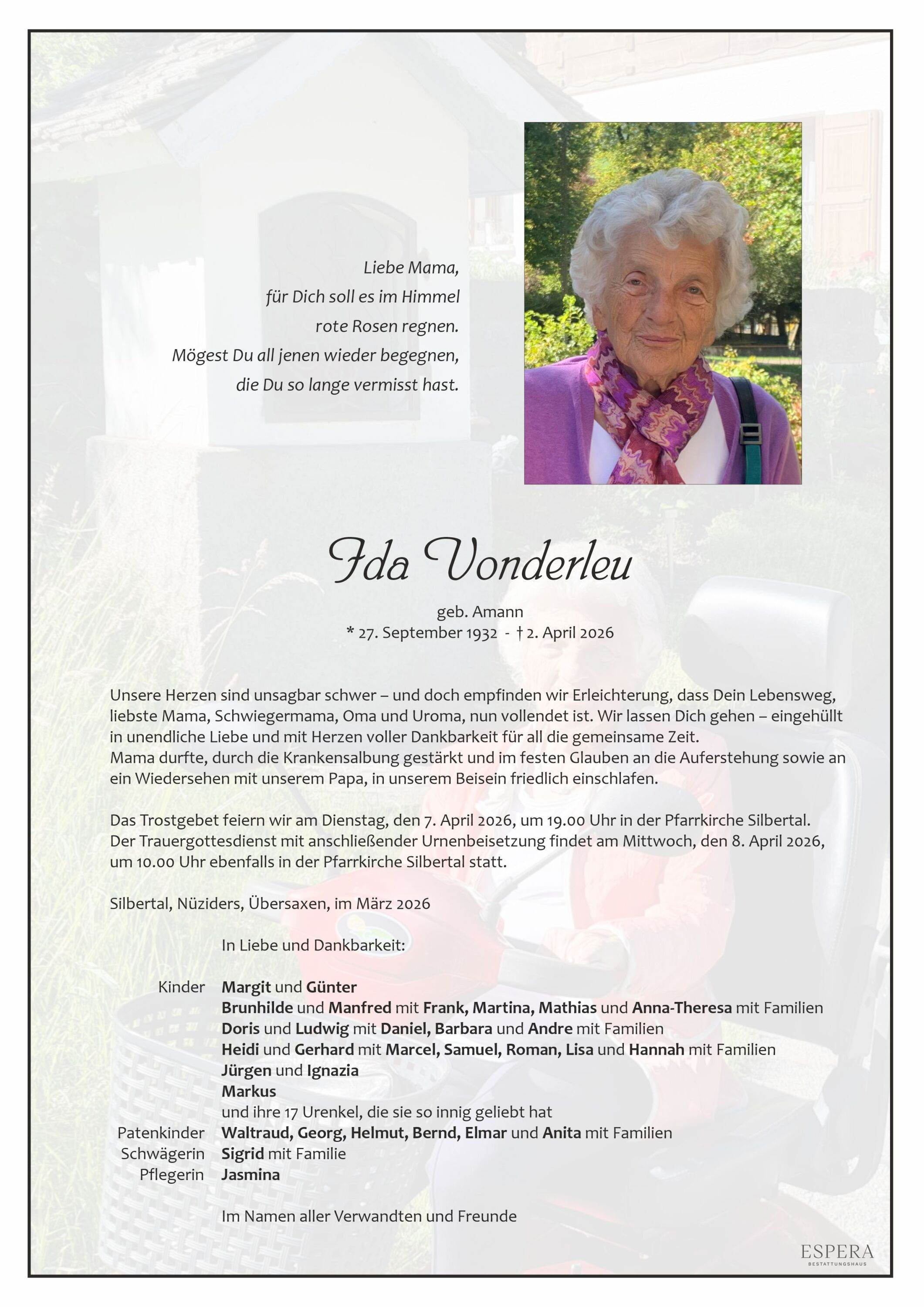 Friedhof Silbertal, † 02.04.2026 (93 Jahre)
