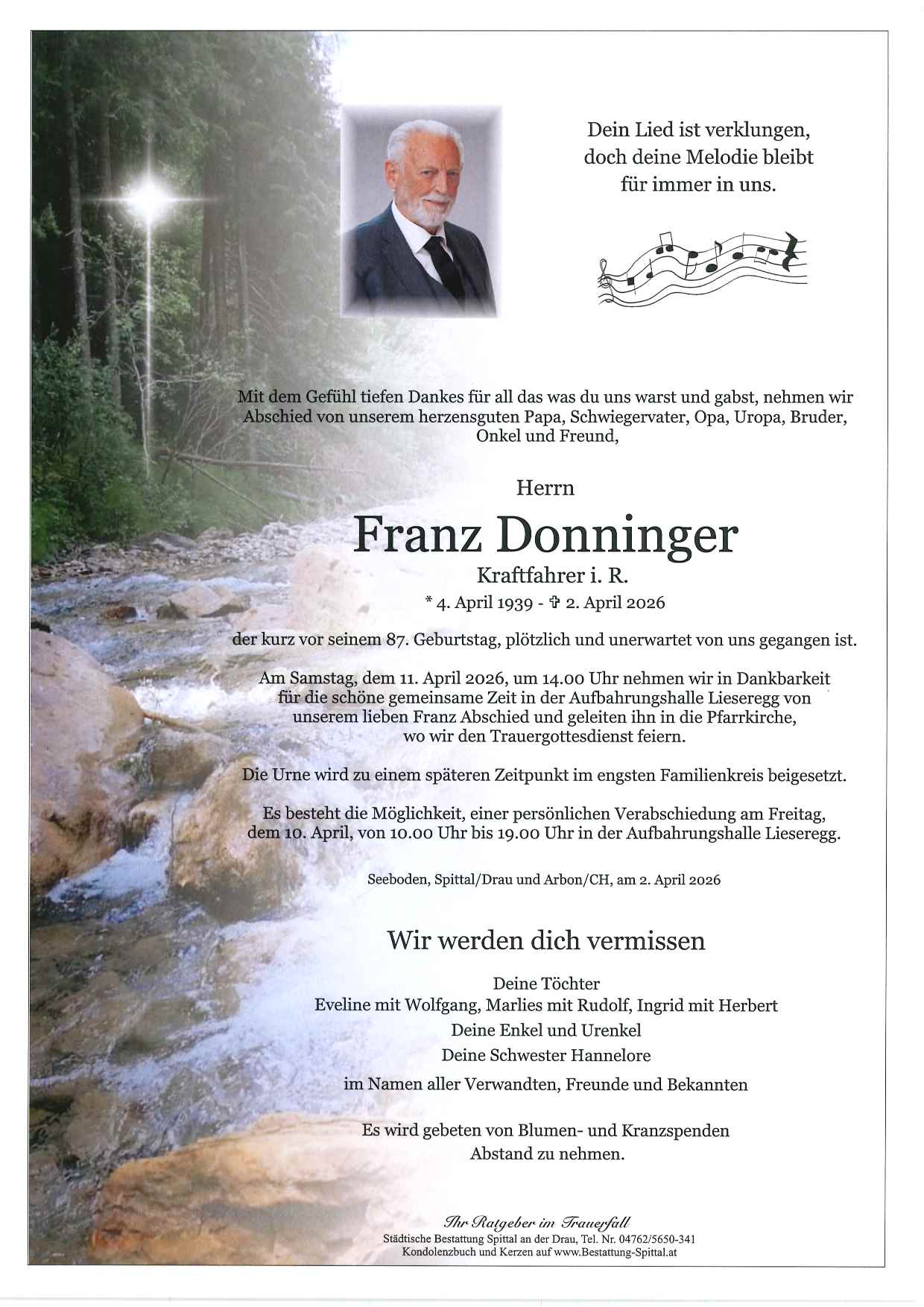 Friedhof Lieseregg/Seeboden, † 02.04.2026 (86 Jahre)