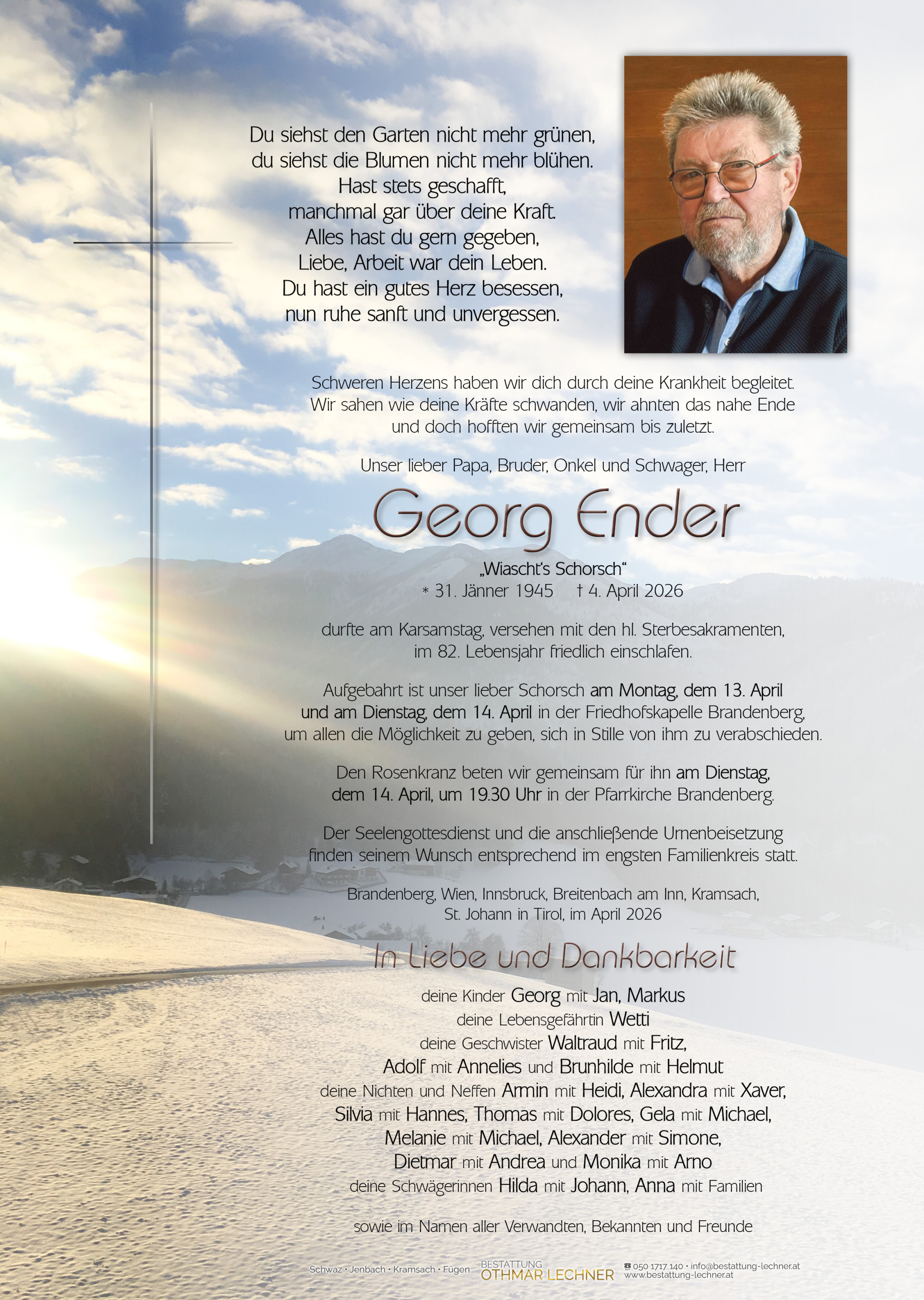 Friedhof Brandenberg, † 04.04.2026 (81 Jahre)