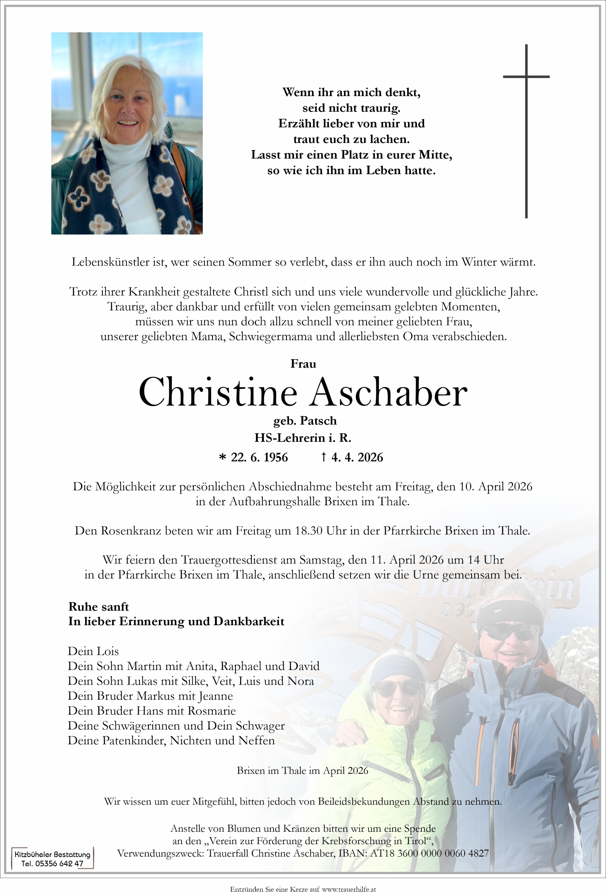 Liebe Frau Aschaber, liebe Christl,