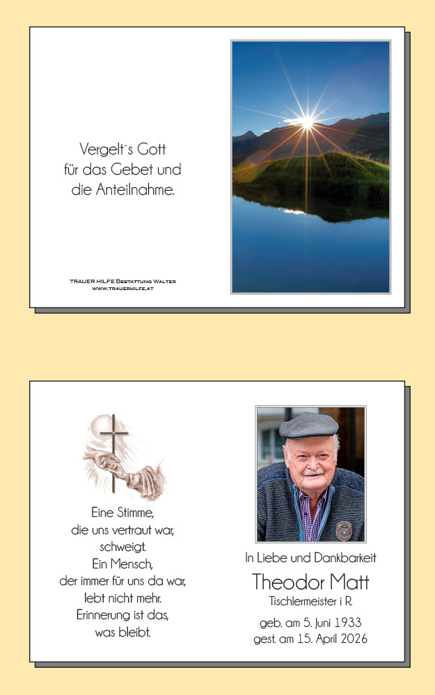 Bestattung wurde durchgeführt von: Bestattung Walter Bestattung Walter Bestattung Walter Nr. 50 6563 - Galtür Tel.: 05443 8312 zum Bestatter