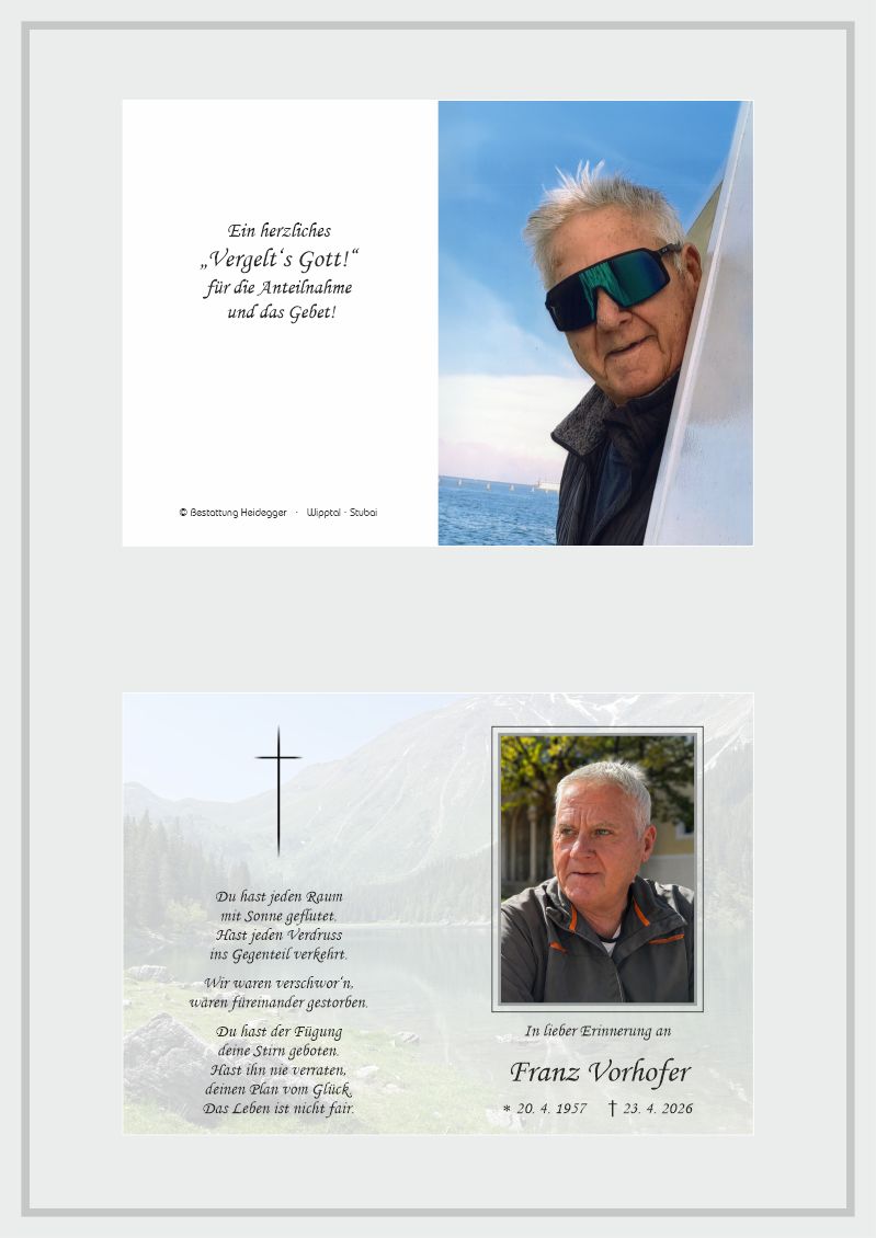 Bestattung wurde durchgeführt von: Karl Neurauter Karl Neurauter Bestattung Heidegger Brennerstraße 69 6150 - Steinach am Brenner Tel.: 05275 5211 zum Bestatter