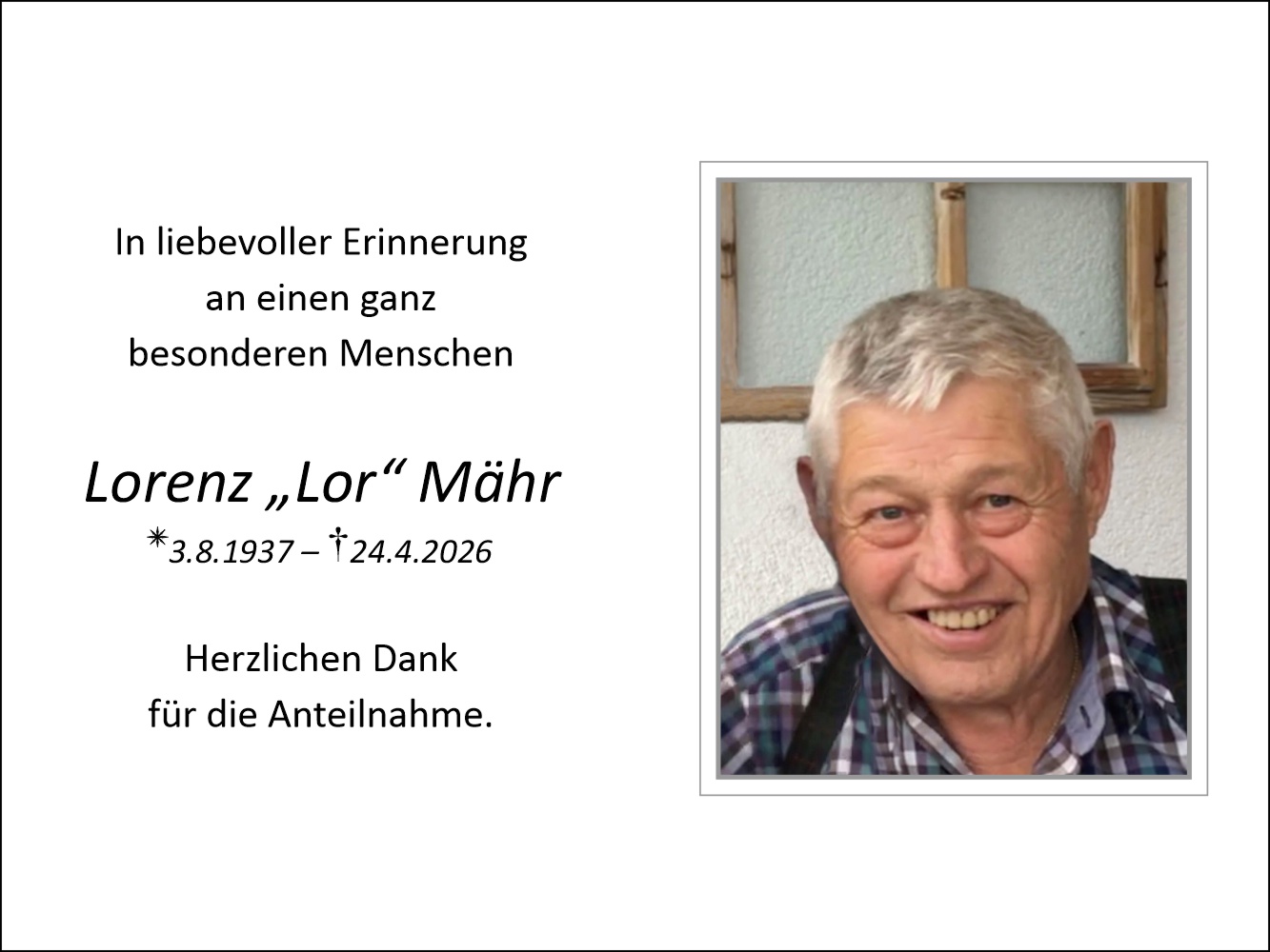 Friedhof Nofels, † 24.04.2026 (88 Jahre)
