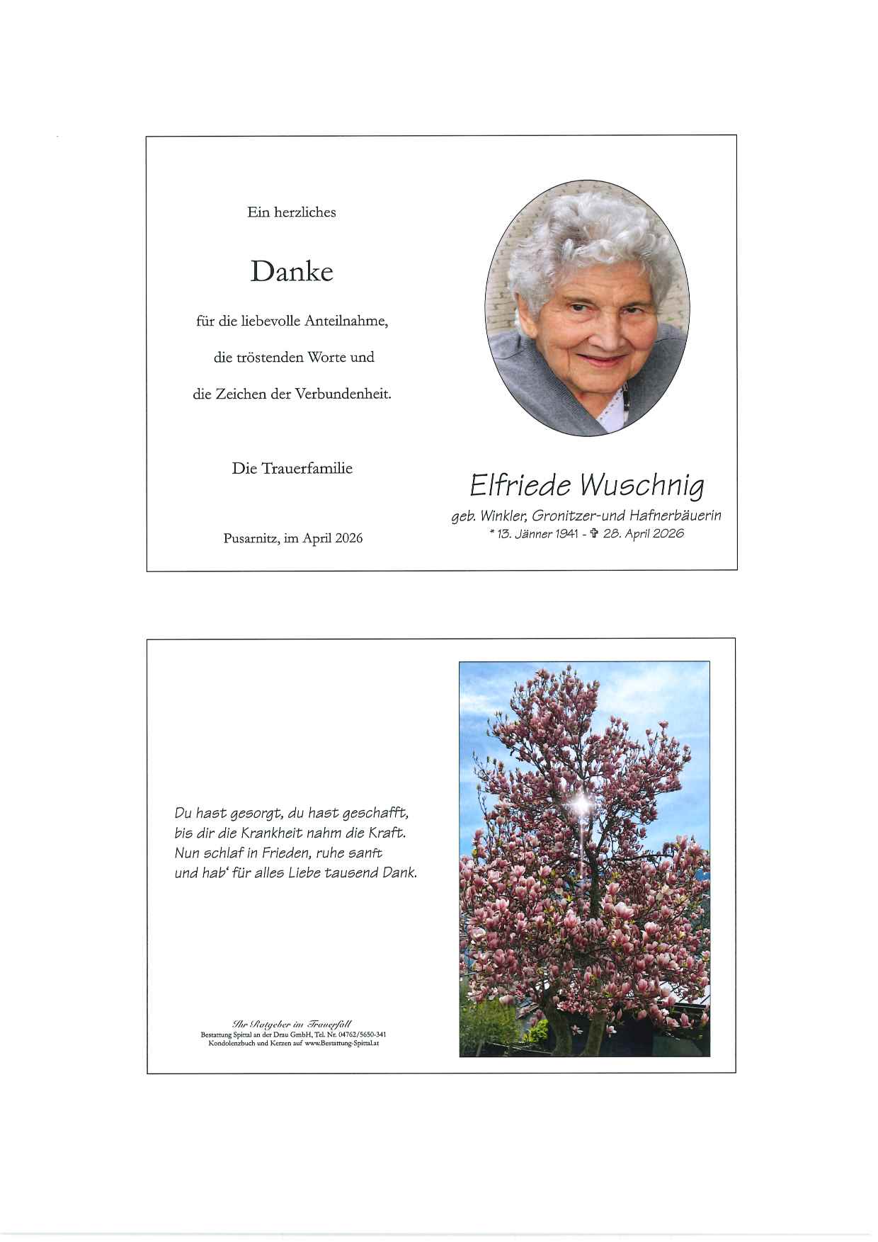 Bestattung wurde durchgeführt von: Gerald Baumgartner/Franz Kramaritsch/Sylvia Wippl Gerald Baumgartner/Franz Kramaritsch/Sylvia Wippl Städtische Bestattungsanstalt Spittal an der Drau Edlinger Straße 55 9800 - Spittal an der Drau Tel.: 04762 5650341 zum Bestatter