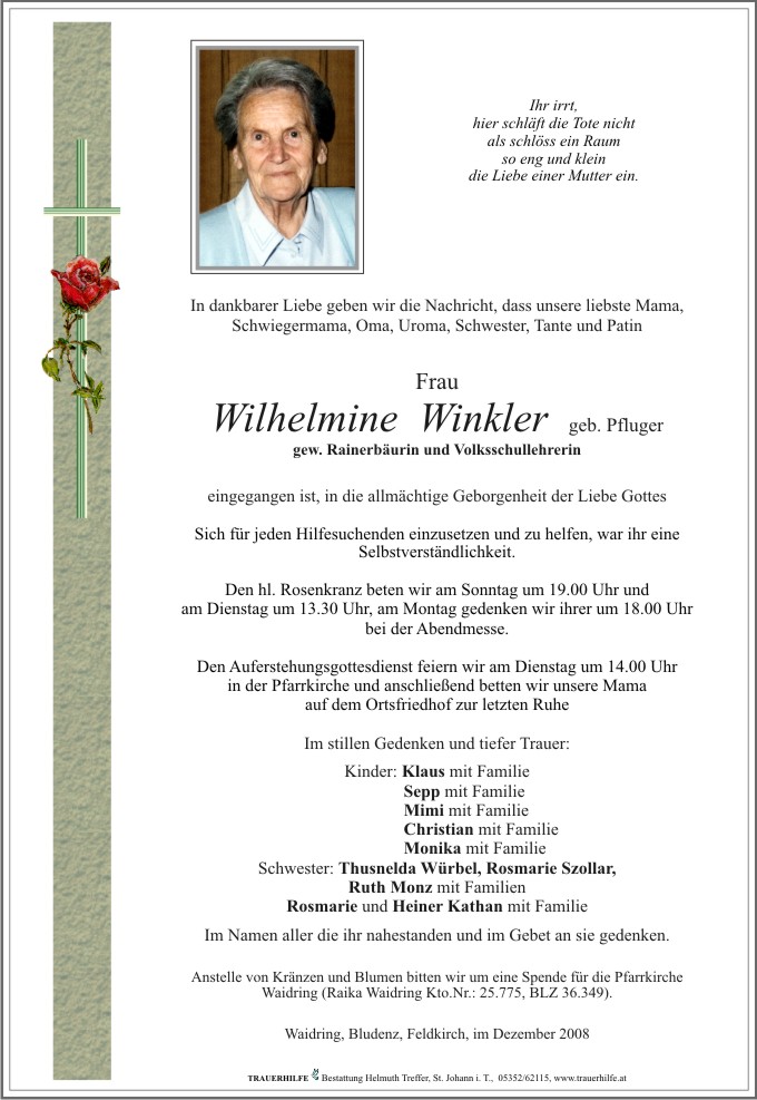 Neue Kerze für Wilhelmine Winkler entzünden.