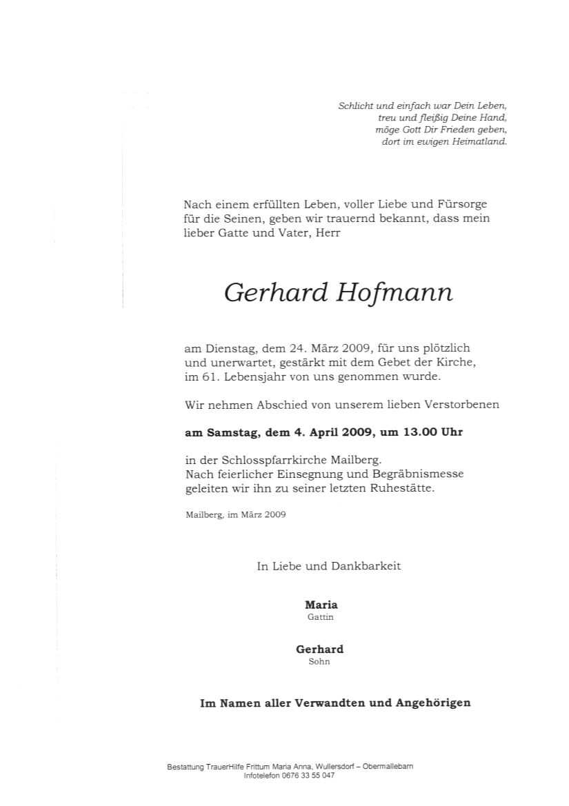 Bestattung wurde durchgeführt von: Frittum Maria Anna TrauerHilfe Bestattung Frittum Bahnstrasse 255 2041 - Wullersdorf Tel.: 050 1717-600 zum Bestatter