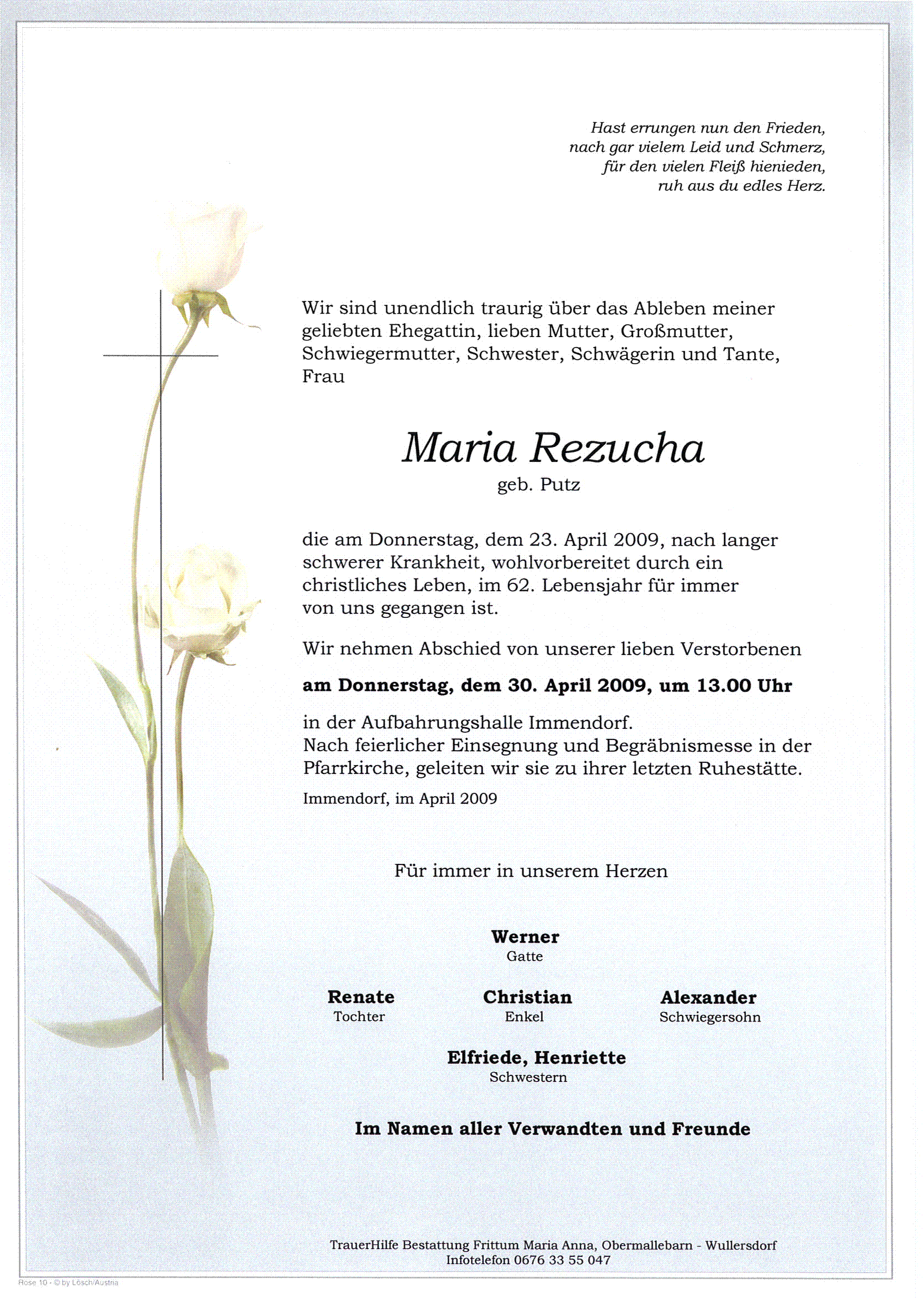Bestattung wurde durchgeführt von: Frittum Maria Anna TrauerHilfe Bestattung Frittum Bahnstrasse 255 2041 - Wullersdorf Tel.: 050 1717-600 zum Bestatter