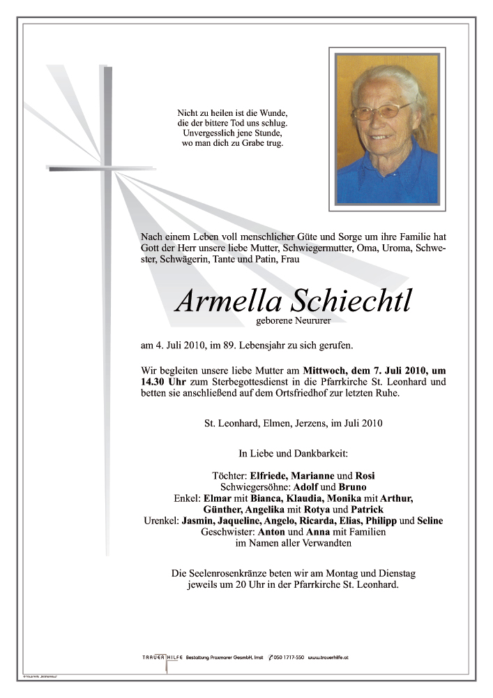 Bestattung wurde durchgeführt von: Daniel Klocker Bestattung Praxmarer GmbH Thomas Walch Str. 4 6460 - Imst Tel.: 05412 64250 zum Bestatter